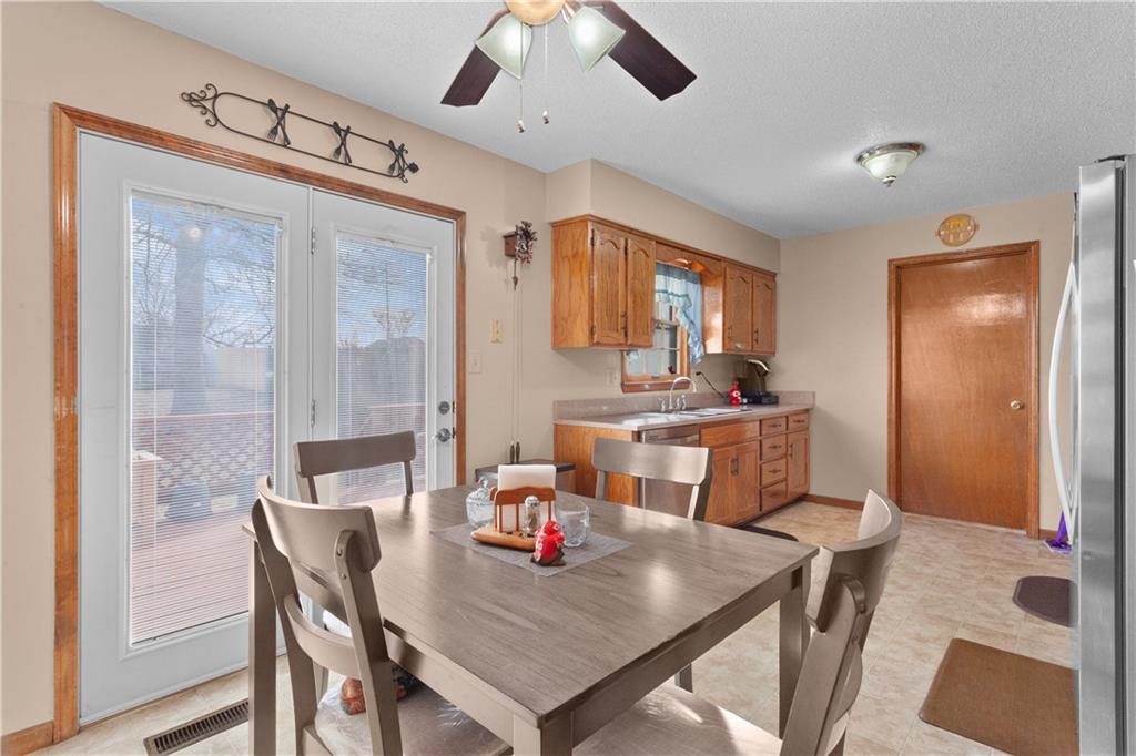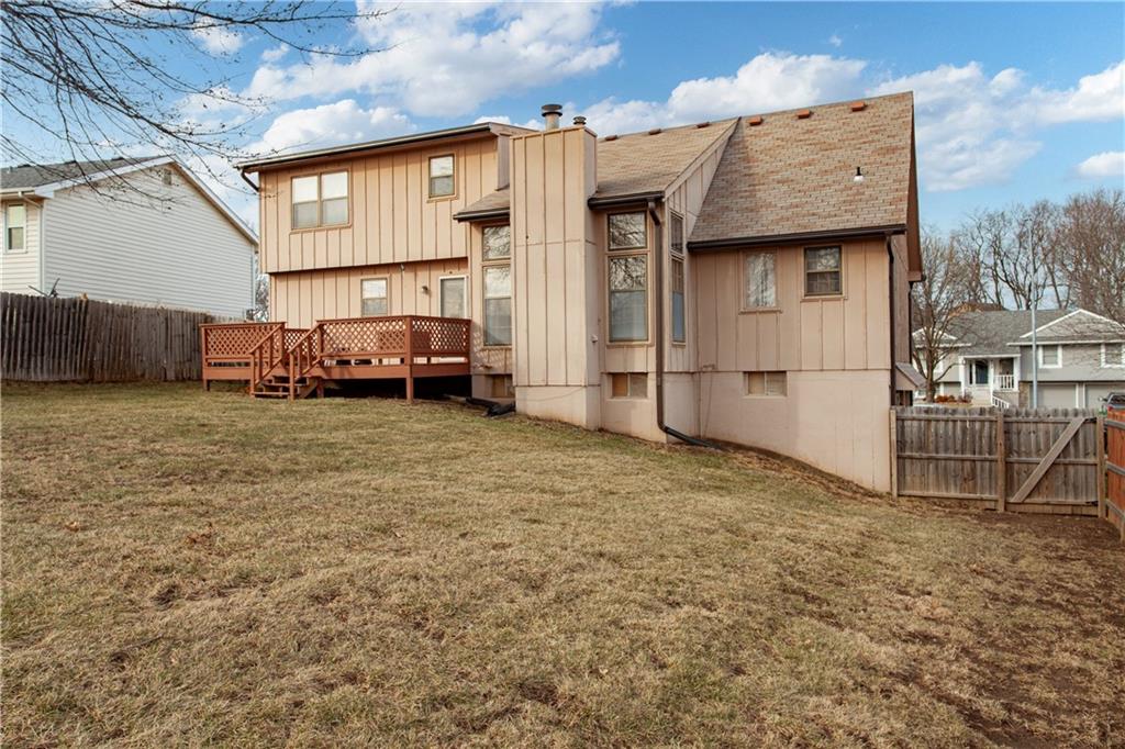 Motivated Seller! Welcome to this beautifully maintained one-owner 1.5-story home in the desirable Seven Hills subdivision of Platte County. Offering 4 bedrooms and 4 bathrooms, this spacious property combines comfort, functionality, and an exceptional layout. A charming front porch welcomes you inside. A formal dining room sits just off the entryway, leading into the inviting living space and adjoining eat-in kitchen. The main-level primary suite features a full bathroom and walk-in closet, providing convenience and privacy. Enjoy easy indoor/outdoor living with a deck right off the kitchen, perfect for morning coffee or evening gatherings. A main-level laundry area with washer and dryer, plus a conveniently located half bath, complete the first floor. Upstairs, you’ll find three generously sized bedrooms, a full bathroom, and a charming loft area, ideal for a reading nook or study space. The finished walkout basement is an entertainer’s dream, offering a large open area, built-in bar, bathroom access, and plenty of storage. Step outside to the expansive backyard, complete with a privacy fence, perfect for pets, play, or outdoor entertaining. This lovingly cared-for home is ready for its next chapter, come see everything it has to offer!