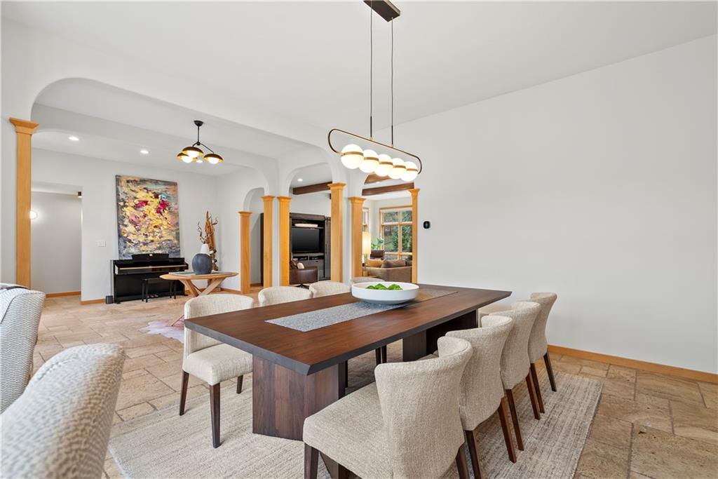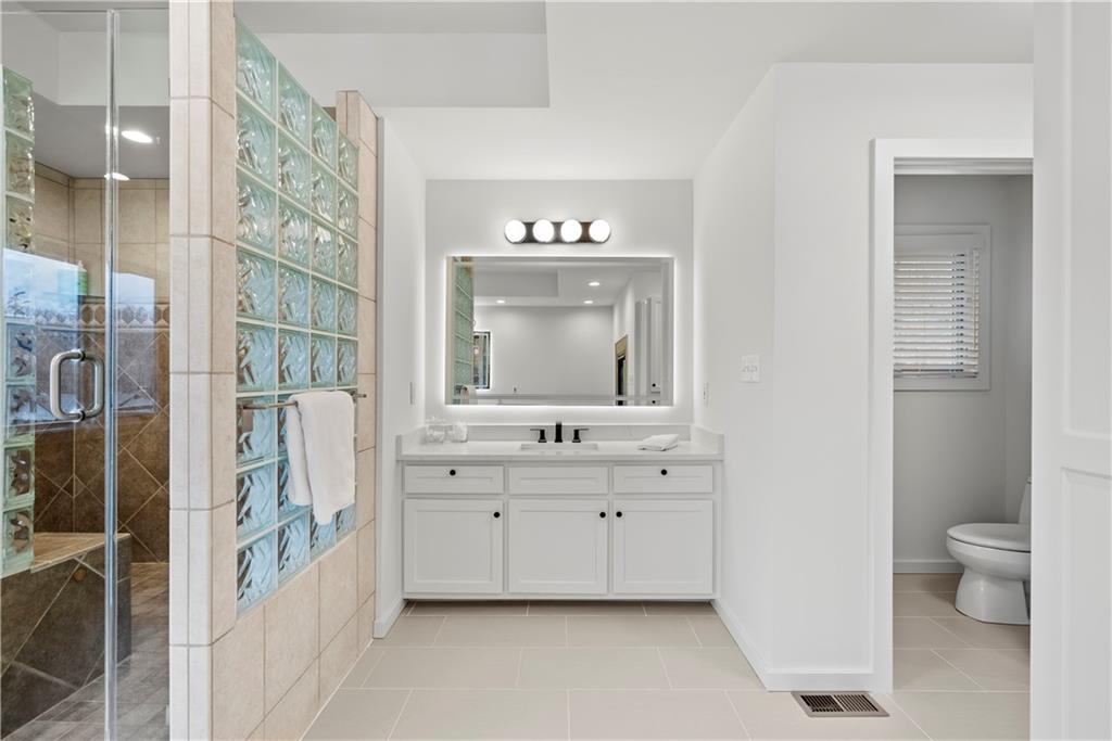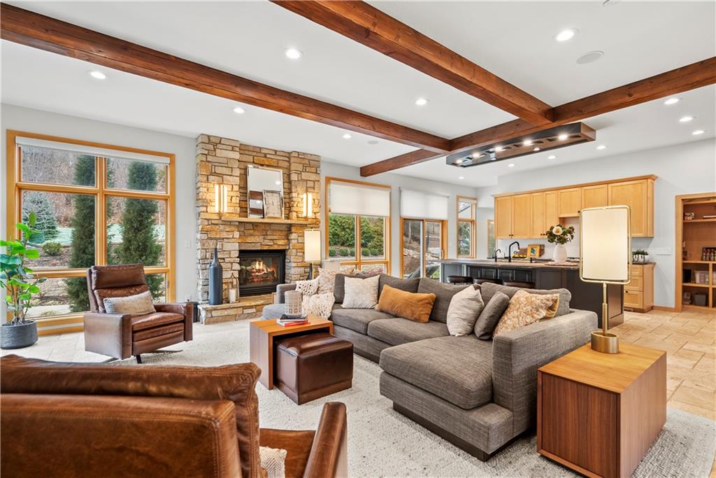 Experience everyday living that feels like a getaway. This stunning lakefront home is filled with natural sunlight & showcase lake views that bring the outdoors in. Significant Updates & Improvements to the Main Level, Finished Lower Level, & the Garage make this home a Perfect setting for both relaxing & unforgettable entertaining. Walk into the Grand Front Entrance with Natural Stone Travertine Flooring & High Ceilings. Enjoy gatherings in the Formal Dining overlooking the lake. The Large Great Room with Natural Gas Stone Fireplace, High Ceiling with Natural Wood Beams & a Wall of Windows with Nice Architectural Details. The Open Kitchen Showcases a Extra Large Island with Beautiful Honed Granite & Countertops, Stainless Steel Appliances, a 5-Burner Gas Cooktop, Warming Drawer, New Dishwasher, New Beverage Refrigerator & a Walk-In Pantry. Just off the Kitchen is a Spacious Updated LaundryMudroom/Home Office with Built-Ins & a Dedicated Desk Area with New Checkered Tile Flooring. The Main Level Offers 3 Bedrooms, All with Newer Laminate Flooring & a Jack-in-Jill Bathroom between 2 Bedrooms. Both main floor Bathrooms have been updated with New Showers & Natural Stone Countertops. Additional upgrades to the Upper Level Primary Suite will be completed before Listing Date. The Upper-Level Primary Suite is a Private Retreat, Complete with a Loft with Built-Ins, Separate Sitting Area, 2 Walk-In Closets & a Private Office. The Primary Bath Includes Dual Vanities with New Countertops, a Newer Soaker Tub & a Large Walk-In Shower with 2 Shower Heads. Secondary Closet Off Primary Bedroom May Be Adaptable to a 2nd Laundry Area. Office Off Primary Bedroom May Accommodate a Lift or Elevator from the Laundry Area Off the Kitchen & Garage (Buyer to Confirm). The Finished Lower Level Features New Laminate Flooring, Exercise Room (Easily Used as a Non-Conforming 5th Bedroom), New Half Bath, Wine Room Area & Ample Storage. One time $40,000 Lake Quivira Required Membership Fee.