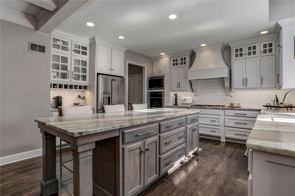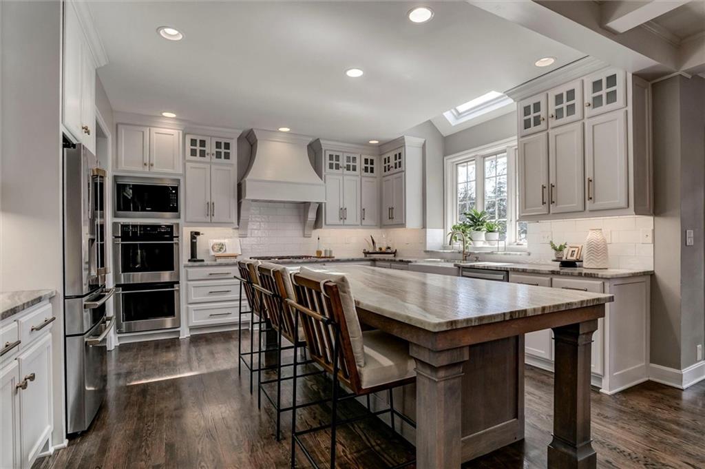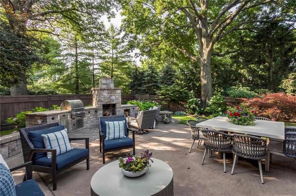 Stunning, award-winning, fully remodeled custom 1.5-story home ideally situated on a private half-acre lot in sought-after Leawood. Offering 5,618 sq ft, this 5-bedroom, 4 full + 1 half bath home has been thoughtfully renovated from top to bottom with exceptional craftsmanship and high-end finishes throughout. The main level showcases a beautiful open-concept layout anchored by an expanded chef’s kitchen featuring custom cabinetry, premium appliances, updated quartzite countertops, and a spacious walk-in pantry—flowing seamlessly into the dining and living areas. A private office with French doors offers ideal work-from-home flexibility. The luxurious primary suite is highlighted by a completely reimagined, spa-like bath and generous walk-in his-and-her closets, plus second laundry for added convenience. Additional main-level updates include new hardwoods, tile, and carpet, updated lighting, two refreshed fireplaces, new stair spindles and hardware, fresh interior paint, and a new front door. Upstairs, you’ll find remodeled bathrooms, refreshed bedrooms, hardwood hallways, and the addition of a third bedroom and full bath in the east wing—perfect for guests or family flexibility. The finished lower level provides an exceptional rec space with custom built-ins, a charming playroom with a built-in playhouse, a fifth bedroom with full bath, and abundant storage—ideal for entertaining or multi-purpose living. Exterior improvements are equally impressive, including a stunning screened-in patio, outdoor fireplace, new 6' privacy fence, freshly painted exterior, new garage doors, epoxy-coated garage floors, and a brand-new roof coming March 2026. Only a two-owner home, originally custom built by the first owners and then completely renovated by the second — a transformation that earned top award of KC Remodel of the Year — this residence is truly one of a kind. It blends timeless design with modern luxury, all in an unbeatable Leawood location.