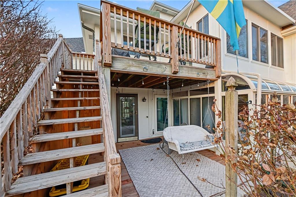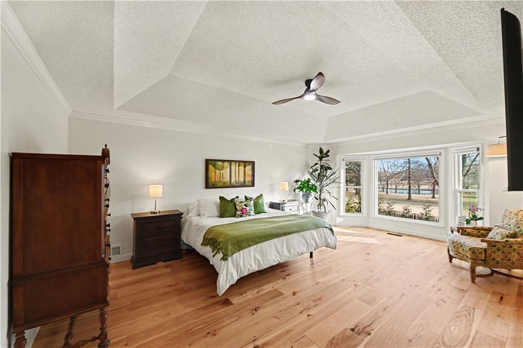Stunning 1.5-story estate offering 4 bedrooms, 4.1 baths, a 2 car garage, and nearly 5,600 square feet, perfectly positioned on over half a acre lot along the golf course at Blue Springs Country Club. From the moment you arrive, the charming front entry welcomes you into a light-filled home designed to impress. Soaring ceilings with striking wood beams elevate the living room, where a beautiful fireplace anchors the space and walls of windows frame breathtaking golf course views. Just off the entry, a private main-level office provides the ideal work-from-home setting. The open-concept kitchen features granite countertops, abundant cabinetry, and flows seamlessly into a sunlit eat-in area/sunroom that opens onto the upper deck. Do not miss the laundry and mud room that is off the oversized garage. The main level also features a spacious primary suite with a beautifully updated spa-like bath, complete with double vanities, soaking tub, and walk-in closet. An additional bedroom and full bath are located on the main floor. Upstairs, you’ll find two oversized bedrooms and a full bath, offering comfort and privacy for family or guests.The walkout lower level is an entertainer’s dream and not to be overlooked. Enjoy a massive family room with bar area, dedicated exercise room, all-seasons room, full bath, fifth non-conforming bedroom, and even a 3rd garage with two workshop spaces — ideal for hobbyists or extra storage. The meticulously landscaped yard is truly exceptional, featuring an upper-level sitting deck, lower-level patio, and established vegetable gardens ready for the next growing season. This home has been impeccably maintained updated with fresh interior paint, refinished hardwood floors, new lighting, an updated primary bath, and more. A rare opportunity to own a golf course retreat that combines elegance, comfort, and functionality — this is a home you must experience to truly appreciate.