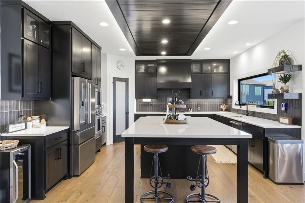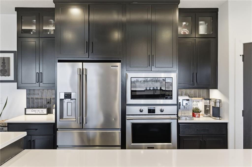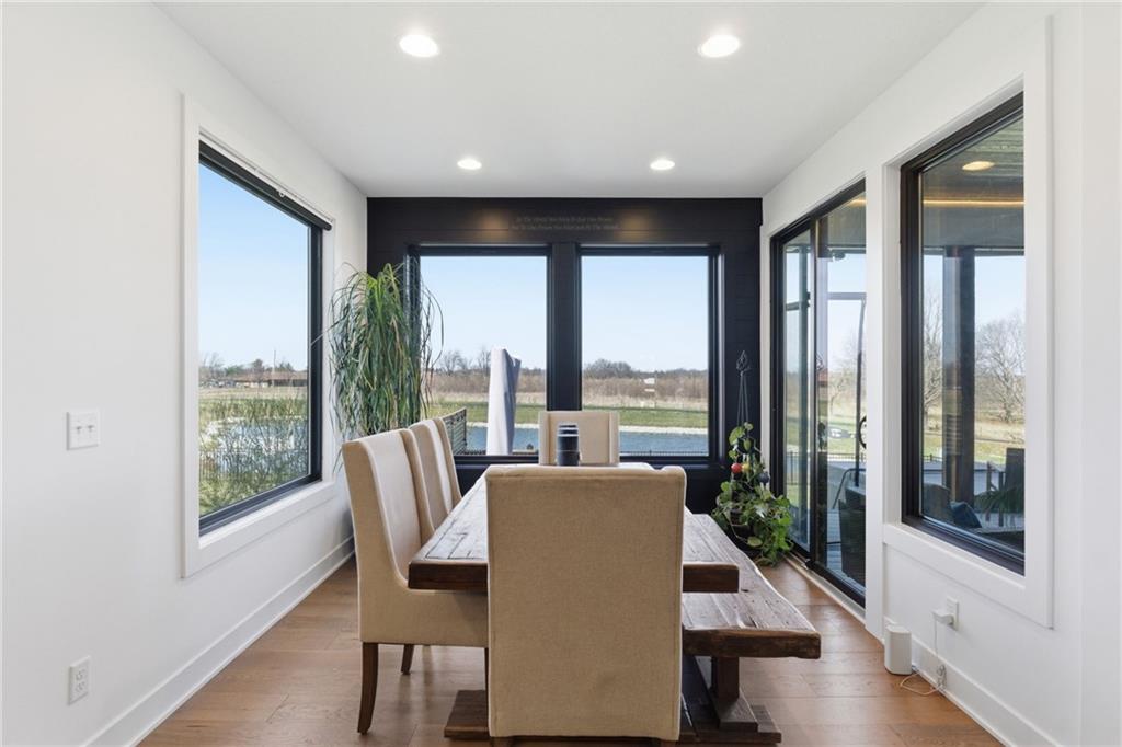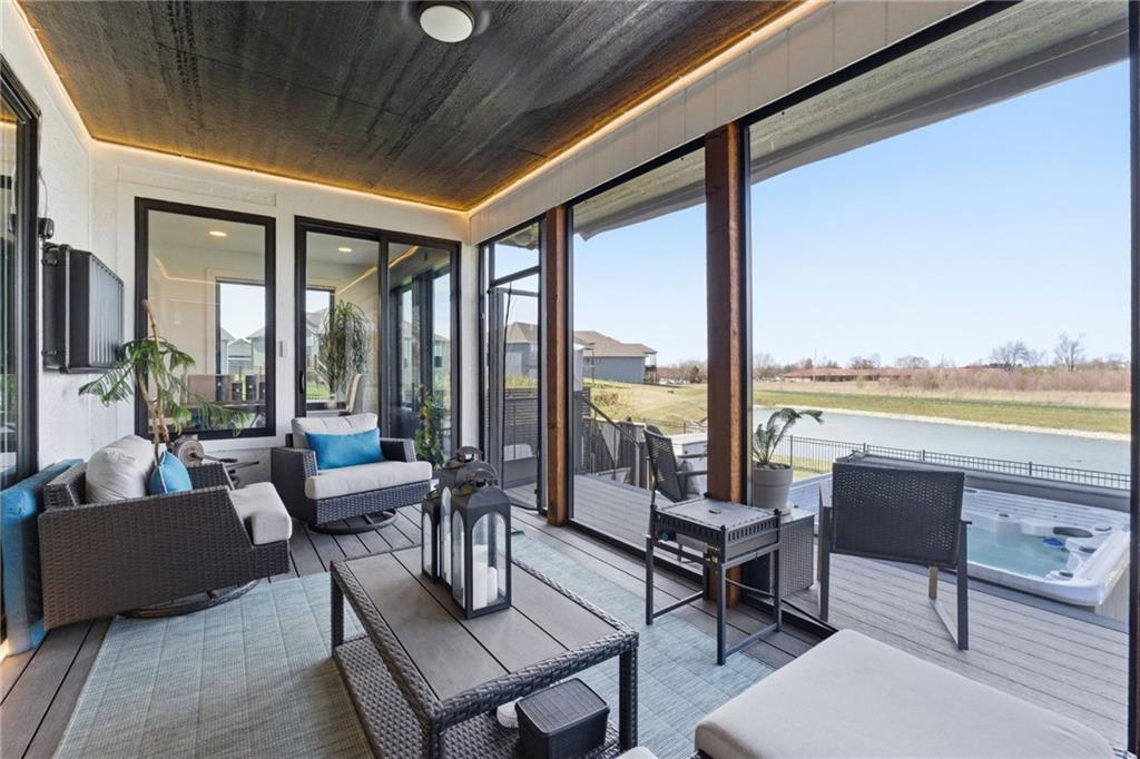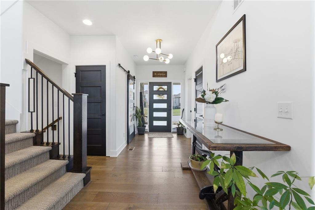 This beautiful nearly new 2 story has it ALL! Immaculate and stylish with high end finishes and GORGEOUS inside and out! The home is loaded with upgrades! You'll love the soaring high ceilings as you step into the Great Room with custom lighting, tons of natural light from oversized windows, and a unique floor to ceiling fireplace with built ins. Quality hardwood flooring runs throughout the main level. The fully equipped kitchen boasts bright white quartz countertops, rich, dark custom cabinetry, indirect lighting, and high end appliances, including a gas cooktop. The kitchen island is massive with plenty of room for entertaining. The kitchen also has a large walk in pantry, as well as a convenient second pantry closet. The upper level has 3 bedrooms, including the stylish primary bedroom with onsuite bath, offering all of the comforts you would expect. The lower level provides plenty of additional living space including a spacious family room with wet bar, game room, the fourth bedroom, and full bath. Additionally there is a generous unfinished storage area. Step out of the large, oversized sliding glass doors in the Great Room and enjoy the peaceful and secluded outdoor space of this home, featuring a huge 20 X 10 covered deck, along with a retractable awning to offer even more shade and comfort. Relax in the 6 person hot tub, which stays with the home. You’ll love the view of the scenic oversized pond just beyond the backyard, complete with walking trails as well as fishing. Monticello is a beautiful newer single family community in Lee's Summit with trails, a pool, and ponds near Fleming Park. Enjoy all the services and amenities this neighborhood has to offer.