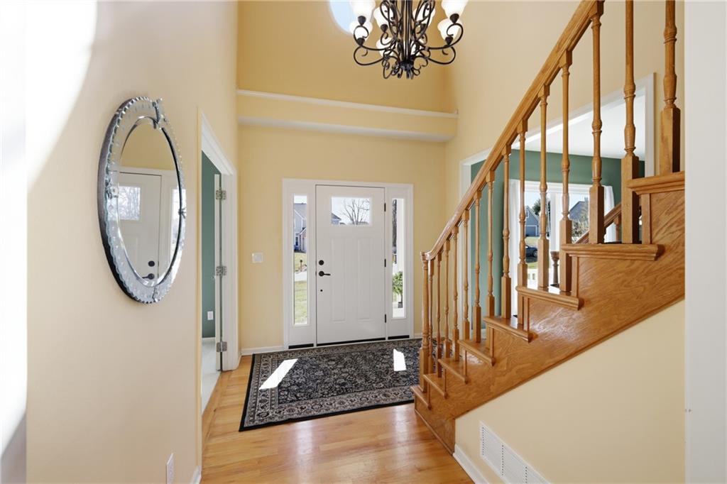 Welcome to this beautifully maintained 4-bedroom, 3.5-bath home nestled on a serene 1-acre cul-de-sac lot in the De Soto School District. Surrounded by mature trees and peaceful outdoor space, this property offers the perfect blend of privacy and comfort. Inside, you’ll find a spacious kitchen featuring granite countertops, a gas stove, and stainless-steel appliances, all opening seamlessly to the inviting great room with a cozy fireplace—ideal for everyday living and entertaining. An additional room on the main floor is separated by glass French doors and provides flexibility for a home office, playroom or sitting area. The primary suite is a true retreat, complete with a versatile bonus space perfect for a home office, nursery, workout room, or sitting area. The large primary bathroom is topped off with a heated bathroom floor and very large walk in closet with attic access space behind for more storage. The finished walk-out basement expands your living options with additional living space, recreation room or even an extra bedroom! A full bathroom, closet, and generous storage are available. Step outside to enjoy the above-ground pool with durable composite decking, perfect for summer gatherings. The 3-car garage has extended length stalls. Recent updates and highlights include: Roof approximately 1.5 years old; New gutters (2025); Windows less than 10 years old and professionally wrapped to help seal out noise and prevent wood rot; HVAC system approximately 5- 6 years old, James Hardie low maintenance siding. With its flexible layout, major system updates, and prime location, this home offers exceptional value and move-in-ready comfort. Don’t miss this rare opportunity!