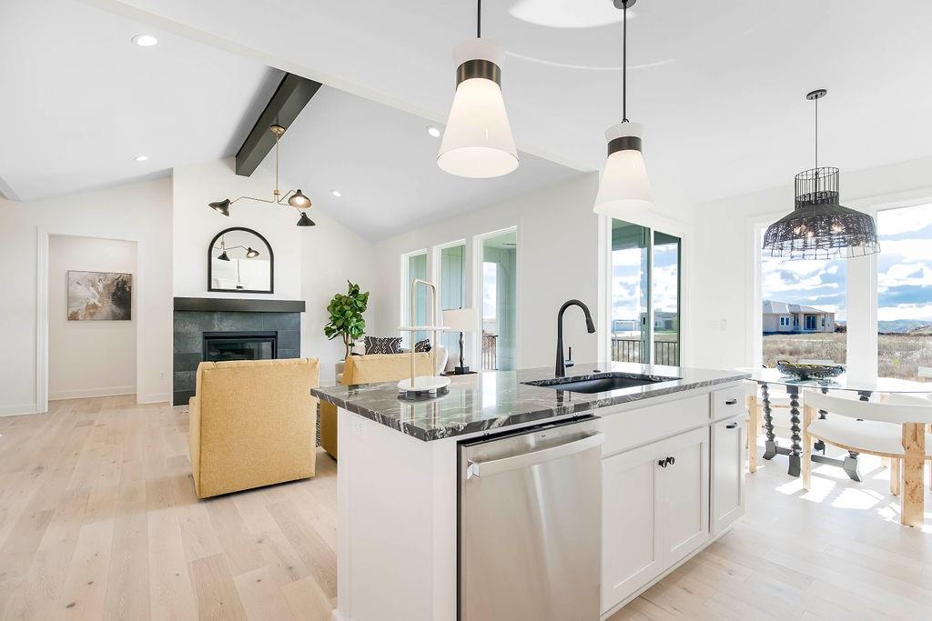 BODROCK HOMES VILLA HOME "THE CAMAS" IS A 3 BEDROOM 2.5 BATH. THIS HOME IS ON A WLAKOUT LOT WITH AN EXPANSIVE VIEW TO THE SOUTH. THIS HOME IS DESIGNED FOR EVERYDAY LIVING AND THE ENJOYMENT OF ENTERTAINING FAMILY AND FRIENDS. THIS REVERSE 1.5 STORY PLAN BOASTS AN APPEALING EXTERIOR WITH STONE PILLARS AND A COVERED FRONT PORCH. ONCE INSIDE THE FOYER, ENGINEERED HARDWOOD FLOORS FLOW THROUGHOUT THE MAIN LEVEL, WITH CARPET IN THE PRIMARY BEDROOM. OPEN AND SPACIOUS PLAN WITH VAULTED CEILING WITH FIREPLACE TO THE CEILING, DRY BAR, OPEN CONCEPT KITCHEN AND DINING AND WALK-IN PANTRY. PRIMARY BEDROOM AND BATH ON THE MAIN LEVEL WITH FREESTANDING TUB AND ZERO ENTRY SHOWER. LOWER LEVEL IS LARGE WITH FAMILY ROOM WITH 2 ADDITIONAL BEDROOMS AND BATHROOM. MISSION RANCH IS A BEAUTIFUL PLANNED NEIGHBORHOOD WITH AMENITIES THAT INCLUDE A CLUBHOUSE WITH AN EXERCISE ROOM, PARTY ROOM, PLAYGROUND, POOL, SPORT COURT, PICKLEBALL, BOCCE BALL AND TRAILS AND AN ELEMENTRY SCHOOL IN THE NEIGHBORHOOD. THIS HOME IS ALSO LOCATED IN THE MAINTENANCE PROVIDED SECTION OF THE NEIGHBORHOOD. IN THIS SECTION FOTH NEIGHBORHOOD, WE WILL ALSO PROVIDE LAWN MAINTENANCE AND SNOW REMOVAL. MISSION RANCH IS CENTRALLY LOCATED TO THE HIGHWAY, SHOPPING AND ENTERTAINMENT. DON'T MISS WHAT WE HAVE TO OFFER. STILL TIME TO MAKE SELECTIONS ON THIS BEAUTIFUL HOME.
