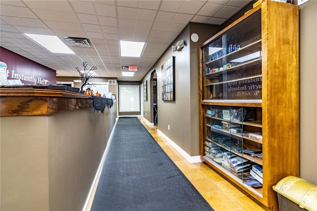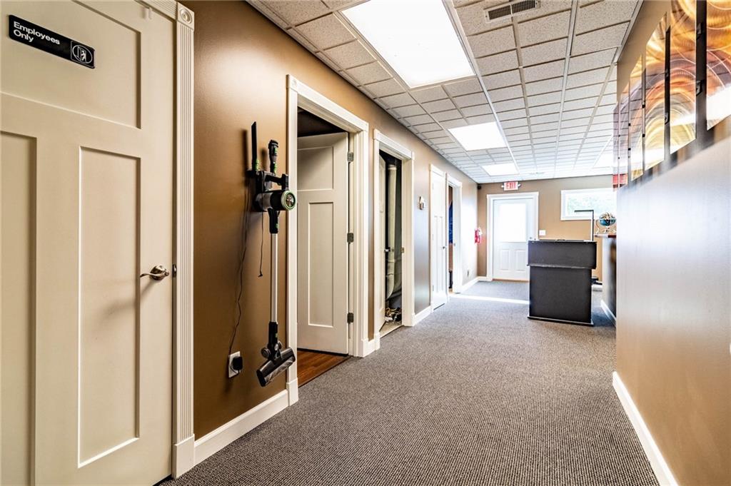 Excellent Opportunity to own a spacious, 3600 sq ft, well maintained, commercial building located in a high traffic area. This property is currently being used as a successful, thriving, chiropractic clinic and there is the option to purchase the business and assets in addition to the building. Clinic offers 7 treatment rooms, 2 offices, 3 restrooms, kitchen, laundry, conference room, 2 storage rooms, 2 reception areas and a waiting room. One of the bathrooms includes a shower and is a private bathroom located off an office. This property is zoned general business so its suitable for office space, restaurant, retail, or other service-based business... options are endless. Features ample parking/detached 1 car garage could be used for additional storage/3 HVAC units/High-end siding/Beautiful Signage/ This building is set up in a way that the back portion could be rented out for additional income or expand the existing practice.
