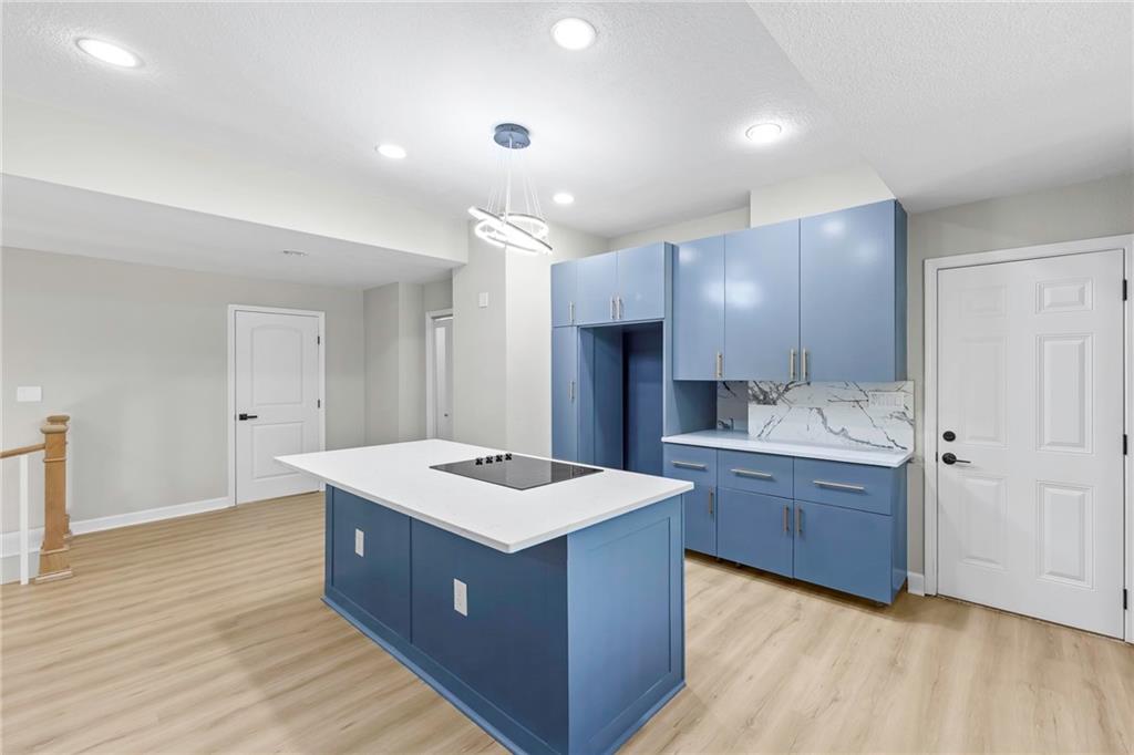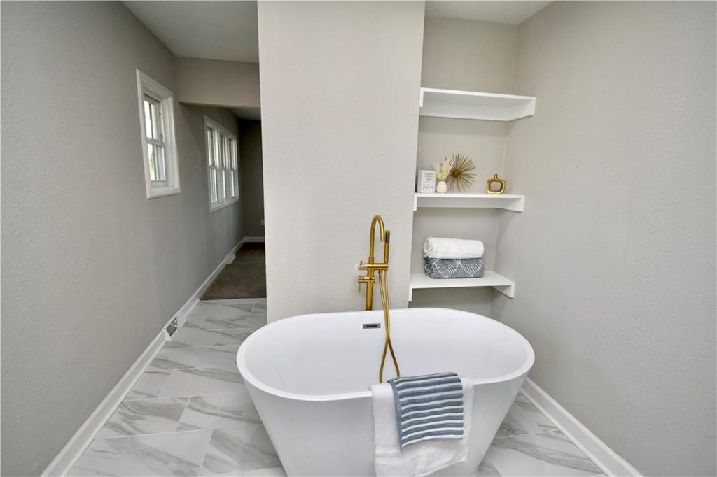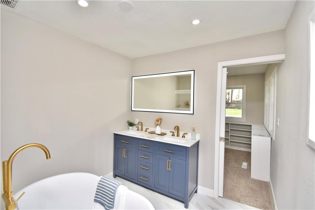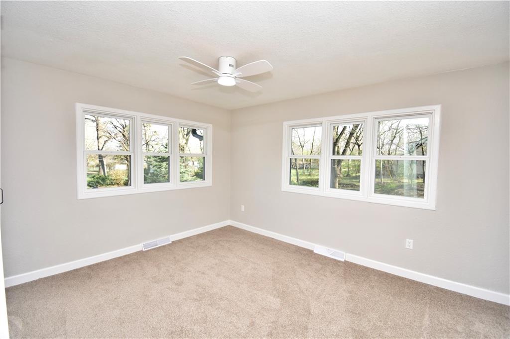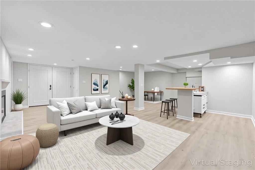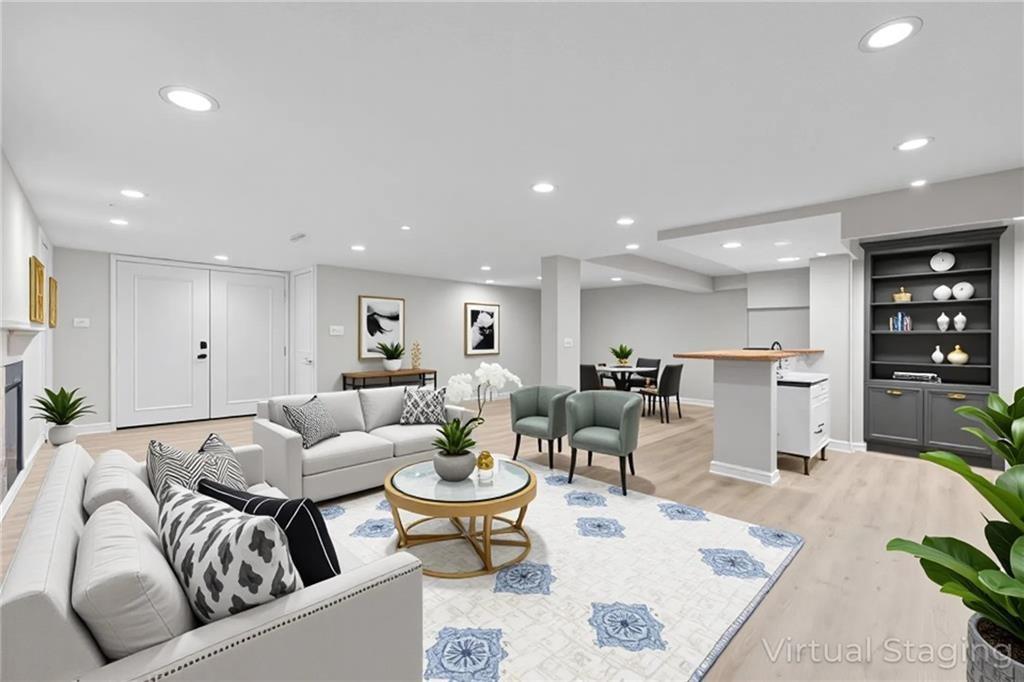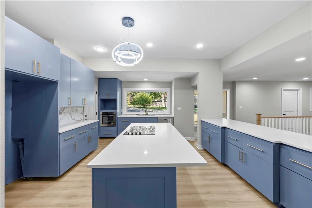 Complete renovated Reverse 1.5 Story offering main level living, spa-like primary suite, and finished walk-out basement on nearly half an acre! If you have viewed this one before, STAY!! Seller took property off market & completed enhancements you will love!! This home also offers main level living with 3 bedrooms and 3 full bathrooms on the MAIN FLOOR—a RARE find. The redesigned primary suite includes a spa-like bathroom, double vanity, LED backlit mirror, walk-in tiled shower, freestanding soaking tub, custom built-ins, and a large walk-in closet. Additionally seller replace LVP flooring on the main level with hybrid wood flooring, and new carpet in bedrooms. The fully remodeled kitchen features new cabinetry, quartz countertops, large island w/cooktop, double oven, pantry, abundance of counter space especially for entertaining! Open concept living room/hearth room with fireplace, abundant natural light, and modern finishes throughout. All new interior doors, trim, hardware, lighting, and ceiling fans. Finished walk-out basement expands living space large rec room, wet bar, second fireplace, additional bedroom, full bathroom, & walk-in laundry room with built-ins. Unique hidden room behind built-in bookcase adds flexible bonus space! Exterior features - covered patio, new deck, nearly ½ acre lot, and partial privacy fence. Major updates: new roof, new garage door, new driveway, fresh interior & exterior paint. This beautiful modern home is Turnkey/ Move-in ready. Prime location w/quick highway access, aprox 15 minutes to downtown, 30 mins to KCI Airport, 20 minutes to Chiefs/Royals Stadium. Close to OP shopping & dining. Shawnee Mission School District. HIGHLIGHTS INCLUDE- Complete Interior Renovation- Turnkey Ready- Reverse 1.5 Story- Main Level w/3 Bedrooms & 3 Full Bathrooms- Primary En-Suite- Finished Walk-Out Basement, Wet Bar- New Garage Door, Driveway, Partial Fence- New Roof- Great Location-Easy Commute!