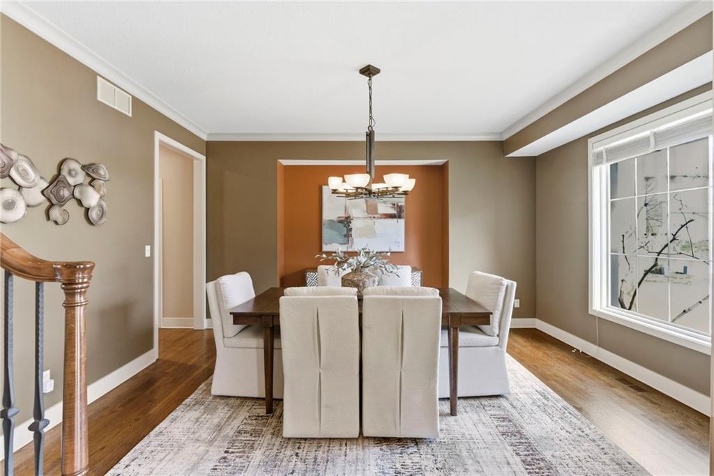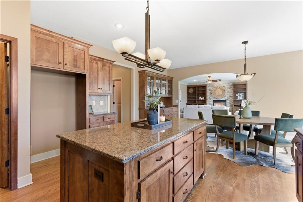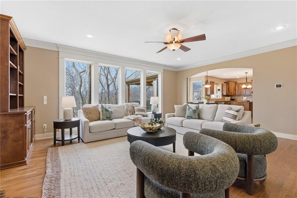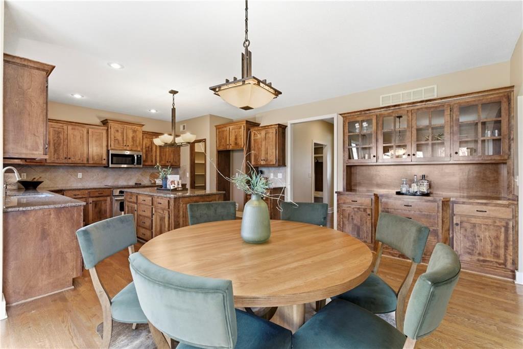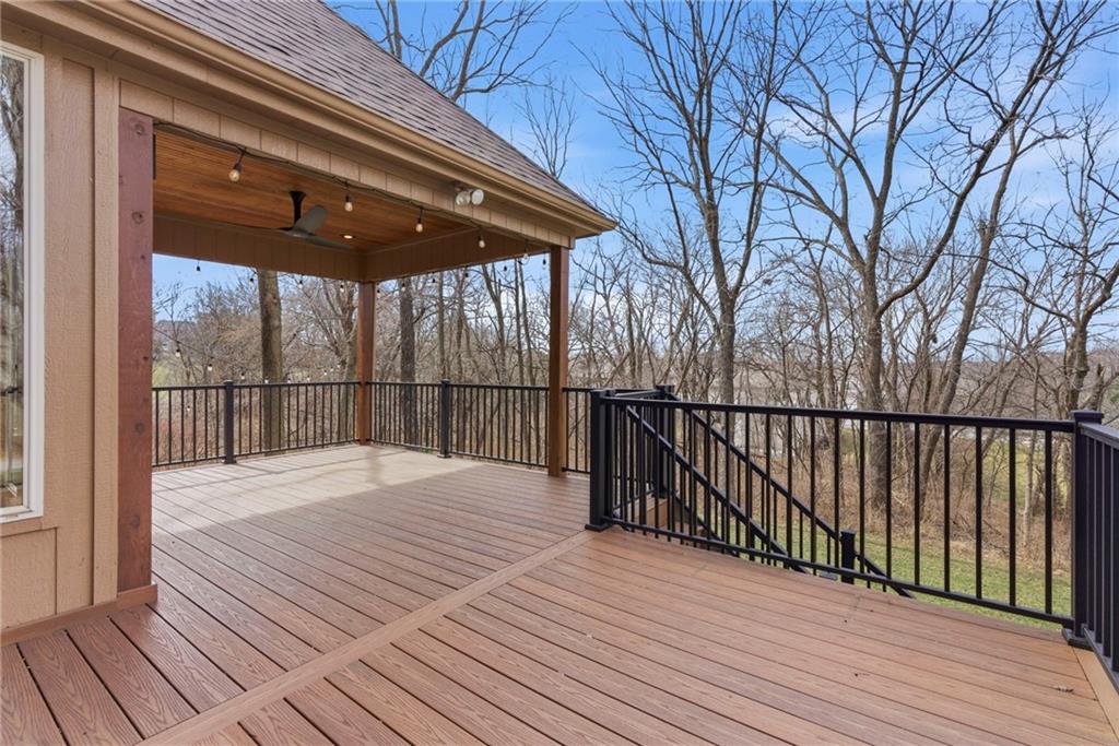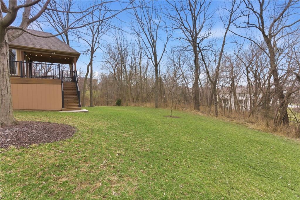 Welcome to this stunning former model home in the sought-after Thousand Oaks subdivision. Crafted by Shawn Land Builders & meticulously maintained by the original owners for nearly 20 years, this refined 4-bedroom, 4.5-bath residence offers just under 4300 sq. ft. of brilliantly designed space. Its oversized lot at the end of a cul-de-sac backs to protected green space, with mature trees surrounding the backyard to provide privacy and a serene setting. From the grand two-story foyer to the expansive lower level primed for entertaining, every detail reflects exceptional living. Highlights include a stylish office, a formal dining room, and a gorgeous living room complemented by a gas fireplace with a stone facade, built-ins, and picturesque windows framing serene views. The kitchen is beautifully appointed with a substantial island, granite countertops, custom cabinetry, GE appliances, a walk-in pantry, & a bright breakfast room. Just beyond, a covered deck becomes an inviting spot for coffee or to unwind with dinner and drinks. Upstairs, the primary suite impresses with double-tray ceilings, a spa-like bath with a jetted tub & shower, & a giant walk-in closet. One secondary bedroom has a private ensuite, while the other two share a Jack-and-Jill bath. Downstairs is an entertainer’s dream, featuring a full wet bar with beverage cooler and fridge hookup, microwave, dishwasher, a huge recreational area, 2 bonus rooms, full bath & storage. Outside, a sensational stone patio, bench, and wood-burning fire pit await quiet evenings under the stars. A 3-car garage has an organization system and a utility sink. Plus, a brand-new roof & 1-year Home Warranty adds peace of mind. Neighborhood amenities encompass scenic lakes, trails, pools, clubhouse, playgrounds, tennis courts, a swim team & social events. With luxury, comfort, and a prime location near Parkville’s shops, dining, entertainment, and top-rated Park Hill schools, this designer home has it all!