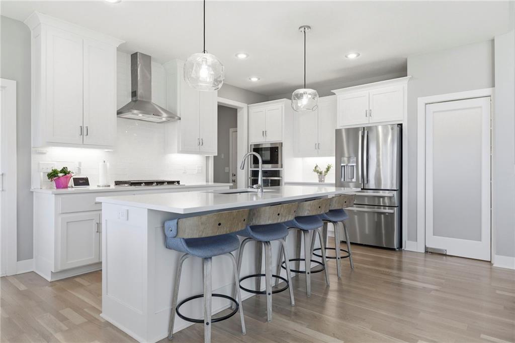 Greenbelt Walkout / Natural Light / 2 Primary Suites & 2 Pantry Areas! Boulder Hills delivers a rare find: fully finished true walkout lower level built for multi-generational living, backing to a gallery forest greenbelt, with Timber Sage Elementary steps away. Two primary suites — one on each level. Upstairs: wall of windows, quartz kitchen island, two pantries, and a screened deck. Downstairs: two bedrooms, full bath, 7-ft wet bar, and a private walkout entrance; ideal for parents, adult kids, or long-term guests. The fully fenced yard with three gates opens to a level backyard made for gatherings and games, all framed by a gorgeous gallery forest greenbelt. A built-in storm shelter adds serious peace of mind, and a storage area has 5th bedroom possibilities. Seller upgrades: epoxy garage floors, garage sink, built-in shelving & workbench, extended deck with backyard steps, active radon mitigation, and metal fencing with three gates. Boulder Hills amenities: clubhouse, pickleball, putting green, pool, playground, and trails. Gorgeously maintained. Truly move-in ready. These don't come up twice. Information deemed reliable but not guaranteed. Buyer to verify all information.