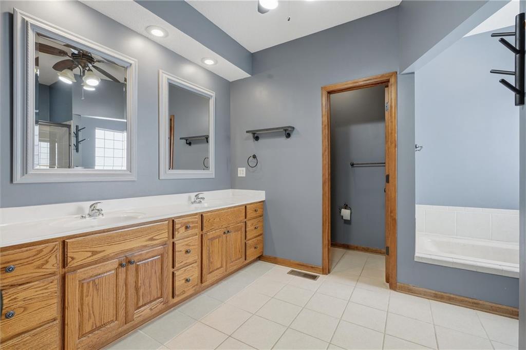 Spacious 4 bed, 2.5 bath, 3,400 sq ft 1.5-story home in the desirable Oaks of Edgewood. Hardwood floors welcome you into an oversized carpeted living/family area with a large window for natural light. The main-level kitchen features a large island, stainless steel appliances, pantry, kitchen/dining combo, and deck access. Half bath conveniently located on the main level. The primary suite, also located on the main level, is a true retreat with a fireplace, private deck, walk-in closet, attached laundry, and a double-door entry to the bathroom with double sinks, soaking tub, and tiled walk-in shower. Lower-level living quarters include three bedrooms, a kitchen, full bath, additional laundry, and abundant storage. Patio and fenced backyard complete the space. Additional highlights: solid-wood doors throughout, a 3-car garage, and ample basement storage. Grain Valley School District. Ready for its new owners!