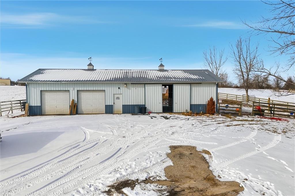Location, privacy, and horse-ready amenities come together on this 10.58± acre ranch property just minutes from Kearney. Set back at the T-intersection of 162nd & Nation Rd, this very nice ranch home offers scenic sunrise and sunset views, abundant natural light, brand-new interior paint, and an open living room with fireplace. The finished walkout basement features a large entertaining area with wet bar, basement bedroom and full bath, plus a bonus room ideal for a gym, office, or media space. The master suite includes a whirlpool tub, and recent updates within the last three years include LVP flooring, new sink, painted cabinets, updated light fixtures, new stall mats, new windows on the front and garage, refrigerator (2025), microwave (2024), and a stove with air fryer. Outdoor living shines with a deck overlooking a park-like setting, raised garden beds, a zen sitting area, fruit trees, and an active vegetable garden. Equestrian improvements include a 32x64 horse barn with four stalls and attached 2-car storage area, additional outbuilding, 12x16 lean-to, 3-rail white vinyl fencing along the road, and vinyl-coated 5-strand high-tensile fencing. Long driveway, good roof, stainless fridge, newer dishwasher, and quick access to town complete this rare blend of usable acreage, updates, and horse facilities.