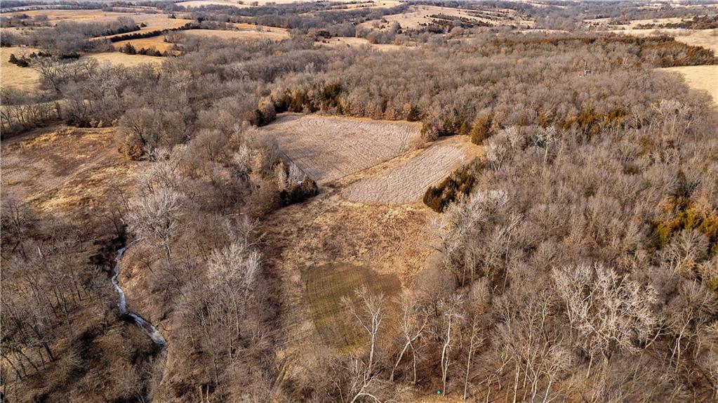The Jameson area is experiencing strong demand for both rural home sites and quality hunting land, and this farm is well suited for either—or both. Whether you’re looking to build, hunt, or simply enjoy the outdoors, this property checks all the right boxes. The farm is exceptionally well laid out for hunting, offering a diverse mix of habitats and benefiting from its position among several large blocks of neighboring cover. The wooded portions of the property feature mixed hardwoods with varying slopes, creating ideal deer bedding opportunities for nearly any wind direction. In the heart of the farm, several open fields are complemented by Mason Creek as it winds through the property, providing a reliable water source and stealth access for hunters. These open fields have been managed for wildlife habitat and include warm-season grasses along with both annual and perennial food plots. Despite its size, this tract truly packs a big punch—offering food, water, bedding cover, and natural travel funnels. The layout creates a hub that ties into surrounding habitat, making it a standout property for whitetail hunting. While the seller doesn't normally run trail cameras, he had a friend place some for a few weeks in September of 2025. In that short period of time there were several up-and-comers and a couple of very nice bucks-the tip of the iceberg for what this farm can produce. With the strong deer population in the area and the impressive setup of this farm, this property is a true gem for hunters. Beyond its recreational appeal, the area continues to grow, making this property an excellent option for a future home or country cabin. The rolling hills along the west side of the farm offer potential building sites with scenic views overlooking the creek bottom below. Located approximately a quarter mile west of K Highway, the property provides the peaceful seclusion of a quiet country gravel road while still offering the convenience of quick access to the blacktop.