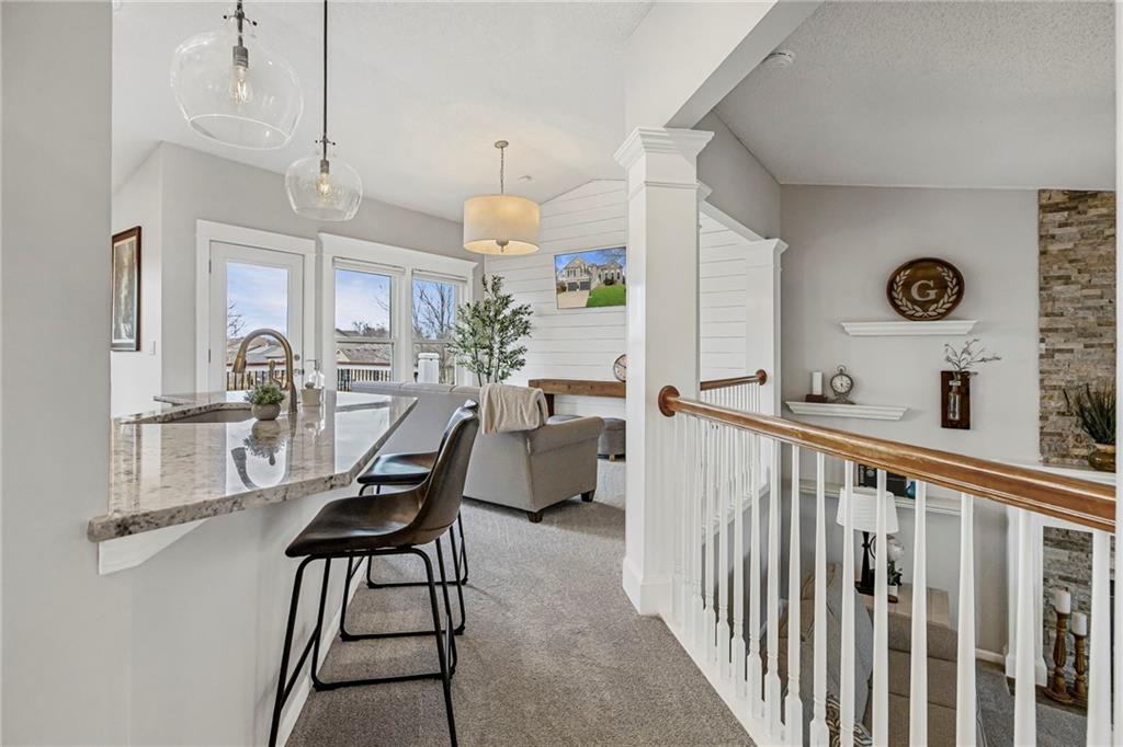 This stunning 3-bedroom, 2.5-bath split-level home is truly move-in ready and shows like new. Thoughtfully updated, it blends modern finishes with functional living spaces—inside and out. The heart of the home is the fully updated kitchen, featuring granite countertops and sink, double ovens, pendant lighting, and updated dinette lighting—perfect for everyday living and entertaining. Throughout the home, you’ll find craftsman-style window trim, added windows that flood the space with natural light, and tasteful details such as shiplap accents in the hearth room/dining area. The fireplace is a showstopper, wrapped in stone all the way to the ceiling. Brand-new carpet (2026) adds a fresh, comfortable feel throughout the main living spaces. The finished basement offers exceptional versatility, featuring a wet bar complete with a beer tap tower and refrigerator, a convenient half bath, surround sound wiring, and a dedicated office or bonus space. Outdoor living is just as impressive. Enjoy two distinct outdoor spaces, including a covered patio with lighting and a newly stained deck and fence. The landscaped yard includes a full sprinkler system and an in-ground basketball goal, making it perfect for both relaxation and play. Major updates provide peace of mind, including new energy-efficient windows with transferable warranty (2023), enlarged 70-gallon hot water heater (2023), lifted driveway with transferable warranty (2023), a roof replacement with updated venting (2015), and updated bathrooms—including a refreshed kids’ bath with added window and new tile in the primary bath. Fresh exterior paint (2018) and numerous smart WiFi switches throughout the home add both curb appeal and modern convenience. This home is a rare find—beautifully maintained and ready for its next owner to enjoy.