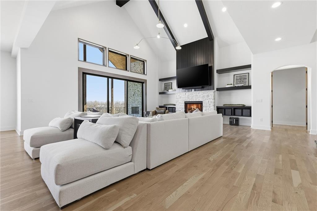 AMAZING NEW 1 ½ story Estate home in highly desired Estates at Chapel Ridge on 1.14 acres! Park Hill School District ! Everything you would want for luxury and style with attention to detail! This 5 bedroom / 5 1/2 bath contemporary home has a 4 car garage with additional #5 in the lower level! Incredible entry features 8' metal pivot front door ! Wood floors thru out the main level. 2nd bedroom suite currently an office which transcends you toward the towering great room with beamed ceilings and fireplace which is a work of art with stylish shelving to showcase your artwork and keepsakes! Upgraded sliding door to the covered deck and fireplace w/ an entertainment area to watch your favorite sports team! Custom designed stairs to the large flat backyard and patio. Gourmet kitchen has quartz countertops and waterfall edge on the oversized island. Cabinet space galore! Side by side refrigerator / freezer, 6 burner range & double oven, in-drawer microwave, farm sink w/ instant hot water. The back pantry has double refrigerator drawers with plentiful shelving, sink and coffee bar space. Enjoy the main level wet bar with ice maker, double wine / beverage refrigerators and perfect entertaining space. Primary Suite is a place to relax in front of the linear fireplace and spa like bath with heated tile floors, double vanity, soaking tub and spacious walk-in shower. You will love the incredibly designed primary closet with its own laundry, special lighting and pull down racks. 2nd floor has 3 ensuites + 2nd office & 2nd laundry. Walk out unfinished Lower level has so much potential to design your own golf simulator space, 6th bedroom suite ...whatever you need ! Excavated area under the NE 2 car garage with an addition garage door to allow access for golf cart storage! The entire 1.14 acres have sprinkler system and sodded. Over the top landscaping ! 3 HVAC systems ...there are so many incredible extras in this home ... have to see it to capture the beauty and decor !