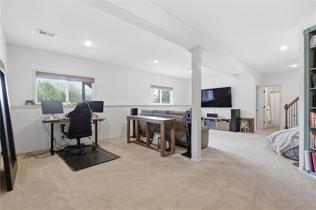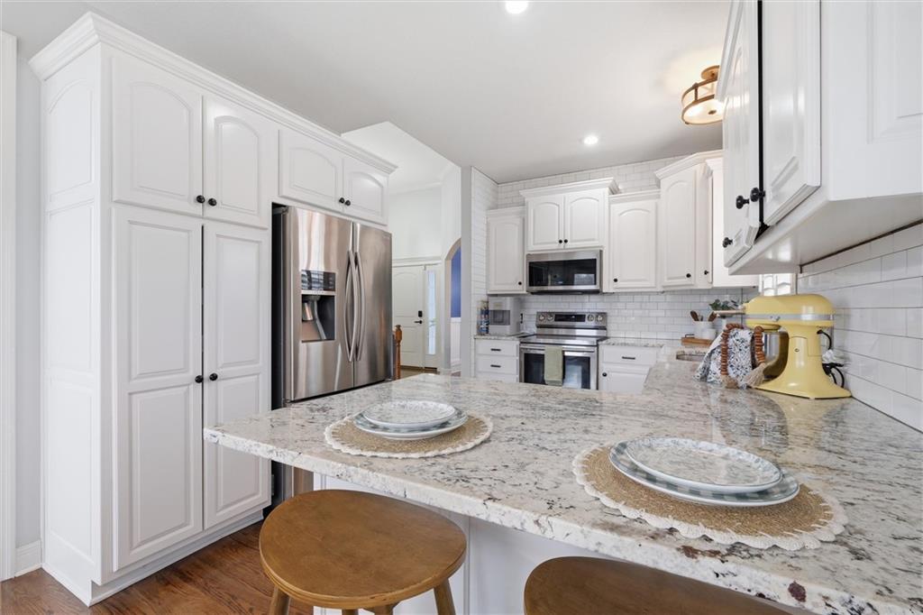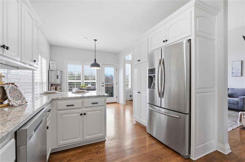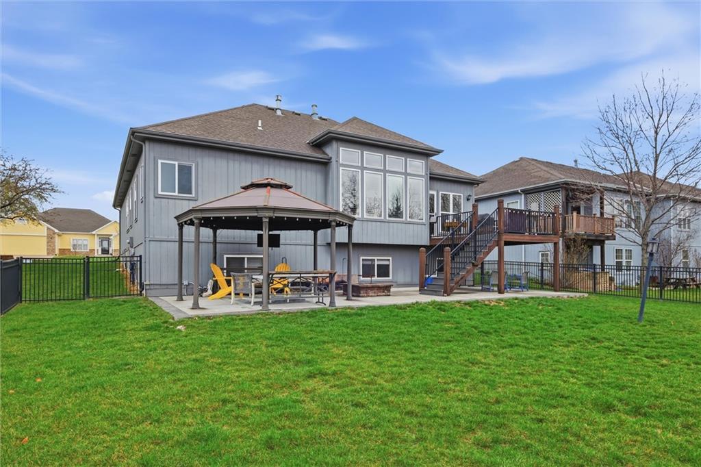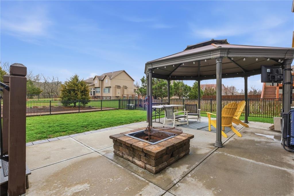 Beautifully maintained ranch-style home offering true main-level living in the heart of Kansas City. This inviting 3-bedroom, 3-bath home features an open and functional layout designed for both everyday comfort and entertaining. The main level showcases plantation shutters, a cozy gas fireplace with custom mantle, and abundant natural light throughout the living spaces. The spacious primary suite offers a relaxing retreat with double vanity, soaking tub, separate shower, and a large walk-in closet. A second bedroom, full bath, and main-level laundry provide convenient one-level living. The kitchen and bathrooms feature granite countertops, and all appliances stay—making this home truly move-in ready. Premium Karastan carpeting enhances comfort in the bedrooms and the finished daylight lower level. The finished basement expands your living space with a large rec room perfect for entertaining, movie nights, or game days, along with a third bedroom, full bath, walk-in closet, and generous storage area. Step outside to your private backyard retreat featuring a spacious gazebo with electricity, gas fire pit, aluminum fenced yard, and in-ground sprinkler system—ideal for relaxing evenings or hosting gatherings. Additional features include a Vivint security system and a 2-car garage. Move-in ready, thoughtfully maintained, and offering desirable main-level living with extra entertaining space—this home is a must see.