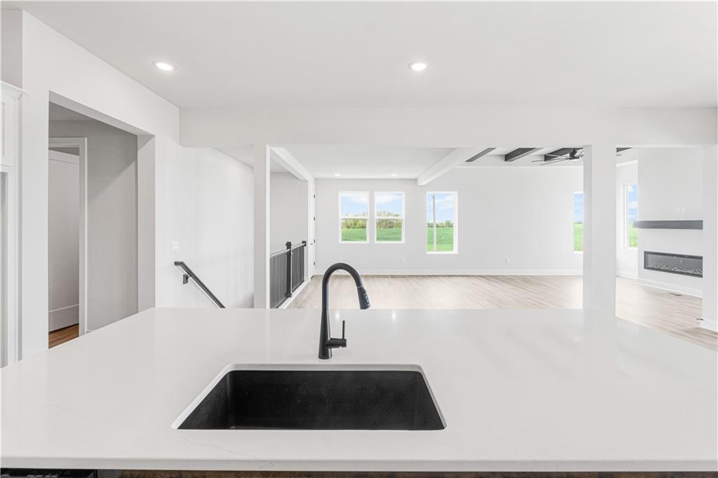 The Hunt by Hakes Brothers is the ultimate home with a grand, luxurious feel! Enjoy the spacious main level featuring 3 bedrooms, 2.5 bathrooms, and a laundry room connected to the primary suite. The chef’s kitchen boasts an oversized island, perfect for entertaining or culinary adventures, with built-in appliances including gas cooktop, oven, microwave, and real wood cabinets. The home features 8 ft doors on the main level and a spacious living room with wood beams serving as a stunning focal point. Quartz countertops throughout elevate the design, and the primary suite includes a spa like bathroom with a fully tiled, zero entry shower. The unfinished daylight basement is waiting for your design touch, with plumbing included for a future bathroom and wet bar create your ultimate hangout or entertainment space exactly how you’ve dreamed. This is a home you won’t want to miss! Located in the desirable Grayhawk at Prairie Gardens community, residents enjoy a pool, playground, green space. Just minutes from The Legends shopping, dining, and entertainment, with quick access to K7 and major highways, and approximately 30 minutes to Kansas City International Airport. Top rated schools, nearby retail, and a vibrant community make this home a must see. Photos are of a similar model and may not reflect all finishes, upgrades, or features of this specific home. Home estimated completion March 2026