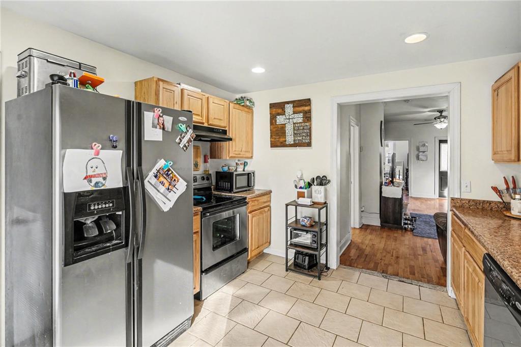 Welcome to this charming 2-bedroom, 1-bath home featuring a large, light-filled living room and a spacious kitchen perfect for cooking, entertaining, or gathering with family and friends. The home has a new roof, siding, gutters, soffits, and window wrap—providing both peace of mind and great curb appeal. Step outside to a fenced-in backyard and back deck, ideal for barbecues, gatherings, or quiet mornings with a cup of coffee. The layout is both functional and cozy, with a flow that makes everyday living effortless. Located near shopping, dining, parks, and schools, this home offers comfortable living in a convenient location.