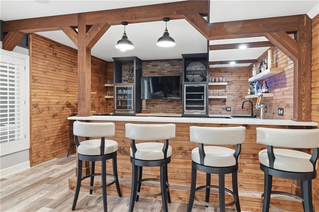 Absolutely STUNNING estate home on 2.56 acres with a reverse 1.5-story floorplan, offering 5 bedrooms & 4.5 baths in an impressive all-brick home with a concrete roof—built for timeless beauty and lasting quality. This home has been extensively updated throughout with fresh interior paint, new fixtures, and flooring. The beautifully updated kitchen is the heart of the home, featuring new countertops, painted cabinetry, updated appliances, and a stylish backsplash. You’ll love the two oversized pantries, offering incredible storage and functionality. The main level also includes a private office with extensive built-in cabinetry, along with a formal living room & formal dining room—perfect for entertaining. The primary suite is a true retreat with an updated spa-like bathroom, including heated mirrors, towel rack & a gorgeous walk-in shower. Even better — the second main-level bedroom features its own private en suite bathroom, making it perfect for guests, in-laws, or a second primary-style suite. You’ll also love the oversized laundry room, offering plenty of space for storage, folding, & everyday functionality. Downstairs, the finished lower level is an entertainer’s dream with a fully updated bar featuring new countertops, cabinetry, fresh paint, & updated lighting, plus three beverage refrigerators & a wine refrigerator. A separate game room includes lots of space for a pool table, ping-pong table, shuffleboard table, and additional bar space—ideal for hosting family and friends. Step outside and enjoy your own private backyard oasis with new landscaping, a saltwater-converted pool, and an incredible outdoor living setup. The property also features an additional outbuilding for pool storage and lawn equipment, plus a new outdoor kitchen designed for summer entertaining. Relax by the fire pit or unwind in the peaceful sitting area under the deck, surrounded by unmatched privacy. This one truly has it all—space, luxury, updates, and outdoor living at its finest.