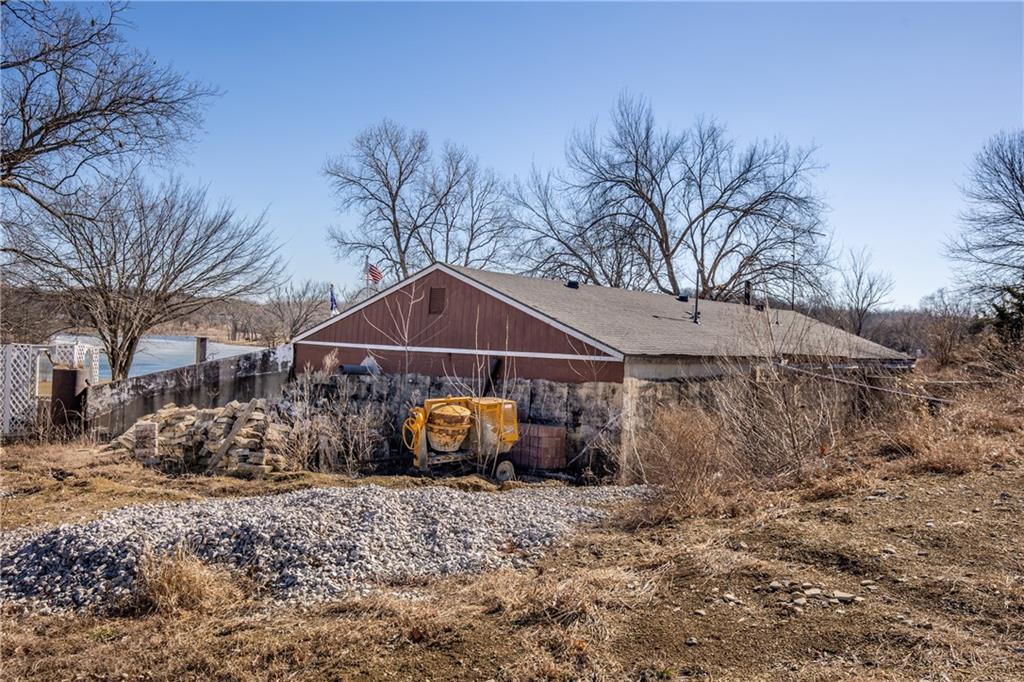 Renovators Welcome! This 3 bedroom, 1 bathroom home offers 1,395 sq ft of living space, plus an additional 744 sq ft garage that is closed in and ready to finish—providing an excellent opportunity to finish out and add substantial square footage. The home also features additional attic space with stairs already built, offering even more expansion or storage potential. Situated on four 2nd tier lots located at Holiday Lakes, just east of Pleasanton, KS. This property offers plenty of room to spread out in a rural setting while still enjoying lake life. The home is in need of major renovation, but the layout, lot size, and extra square footage opportunities make this a prime value-add project for an investor or buyer with vision.