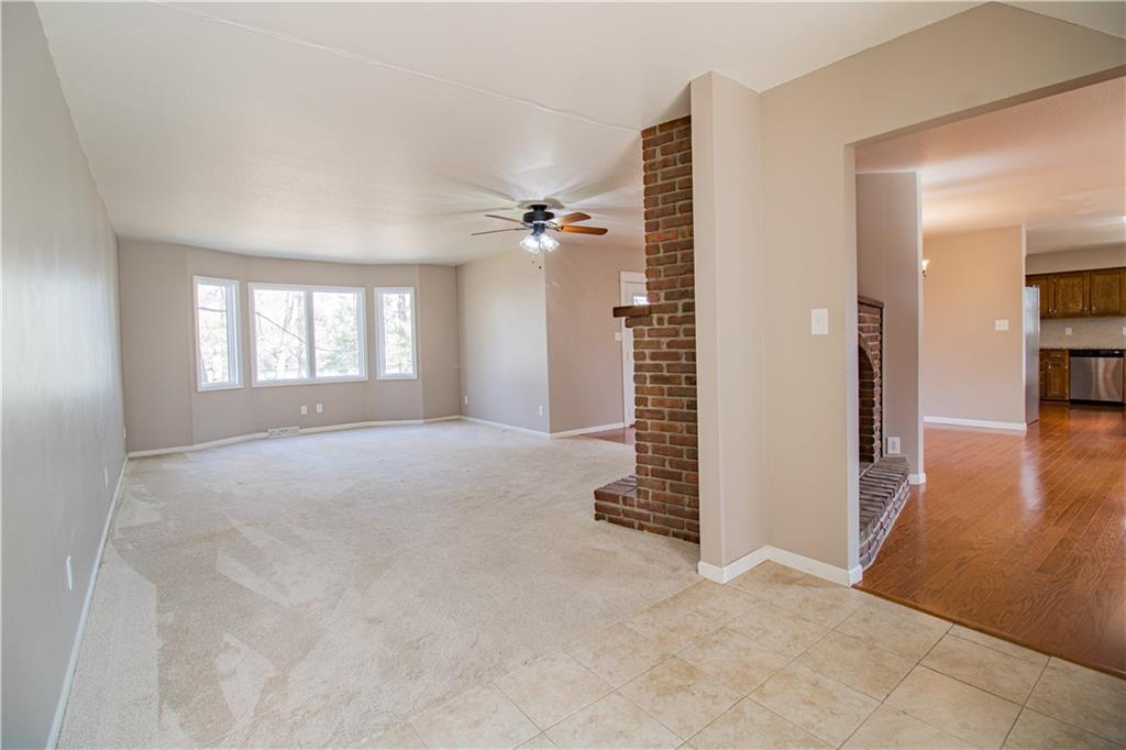 Enjoy the private and scenic feel while having centrally located convenience! This beautiful brick front home is nestled on a large treed lot that offers charm with modern updates. You will enjoy cozy nights around the brick fireplace located in the spacious living room on the main level. The semi-open floor plan is perfect for hosting and entertaining in the substantially sized kitchen and dining area. The kitchen includes beautiful wood cabinets, granite countertops, a kitchen island, stainless steel appliances including a double oven, and more cabinet space than you could need. The sizeable primary bedroom features a bump-out with a large window for plenty of natural light. The primary bedroom is equipped with an ensuite bathroom with ample space, a generously sized vanity, large stand up glass shower with beautiful tile, whirlpool bathtub and spacious walk-in closet. The finished basement offers a family room with another brick fireplace, a bedroom, full bathroom, unfinished storage space, and garage access. The fenced-in backyard provides a picturesque scenery and is perfect for pets.