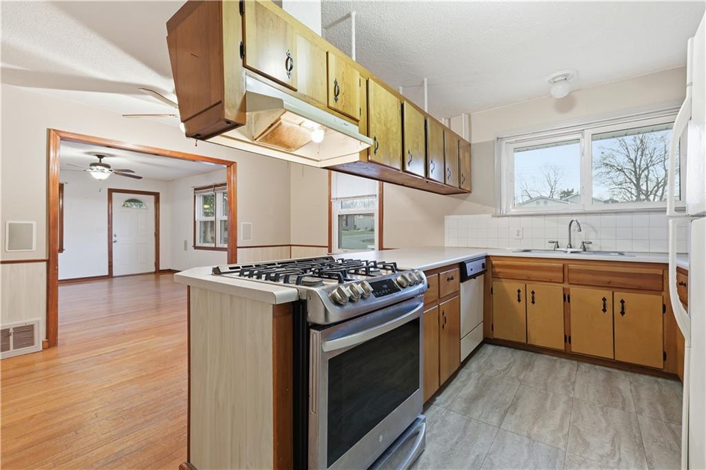 Charming 3-Bed, 2-Bath Raised Ranch with Paid-Off Solar. Close to restaurants and easy I-70 highway access. Welcome home to this well-maintained 3-bedroom, 2-bath ranch offering comfort, efficiency, and thoughtful upgrades. The open living area features beautiful hardwood floors and flows seamlessly into the eat-in kitchen, complete with a gas range, bar seating, and all appliances staying—perfect for everyday living and entertaining. The primary suite includes a private en-suite bath with a spacious shower, while the additional bedrooms offer flexibility for guests, a home office, or hobbies. Enjoy peace of mind with a 5-year-old roof, newer windows, and paid-in-full solar panels, providing long-term energy savings. An unfinished basement offers abundant storage and future potential, with convenient access from both the garage and inside the home. Outside, relax on the side porch and appreciate the functionality of the one-car garage. This move-in-ready ranch combines efficiency, storage, and classic charm—don’t miss your opportunity to make it yours!