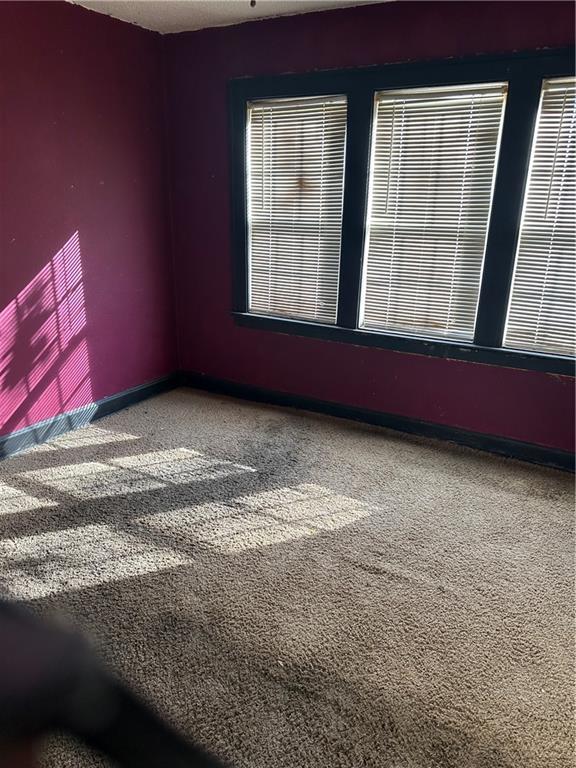 Empty room featuring carpet floors and baseboards