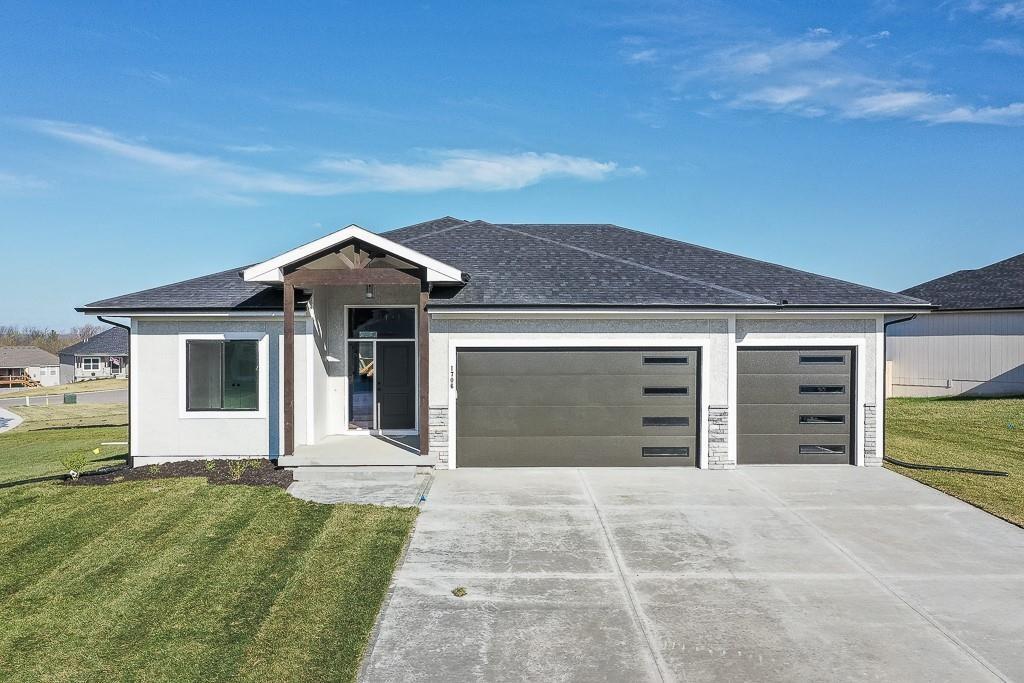 Lot 40. Colorado by Pfannes Homes. This home is estimated to be complete by April! FINISHED PHOTOS OF A PRIOR MODEL. This great home in a GOLF COURSE community with lawn maintenance/snow removal provided has all the upgrades! 3 car garage with the main 2 car section that is 25' deep and the 3rd car is 24' deep! This large garage also includes a mini-split to keep it comfortable. The open main living area includes a fireplace with cabinets, additional kitchen cabinets at the island, and a nice dining area. Oversized pantry! Plenty of light with windows all across the back. Large corner lot! Primary suite includes 17 x 14 bedroom, luxury bath and nice closet. The second bedroom is good sized with full bath and linen closet. The Lower level includes family room with wet bar, full bath. two bedrooms and plenty of storage. Quartz in kitchen and bathrooms, tile floors in laundry and baths and wood floors in entry, living, dining and kitchen. Zoned HVAC to keep the lower level comfortable and a low maintenance composite deck. Don't miss this opportunity to live in the Communities of Falcon Lakes, just off K7 with an easy 30 minute commute to the airport, 10 minutes to the Legends Entertainment and Shopping District and 30 minutes to Lawrence. Acclaimed Basehor-Linwood schools! Provided lawn maintenance includes mowing/trimming/blowing, weed/feed, landscape/tree trimming, sprinkler turn on/turn off. Snow removal over 2".