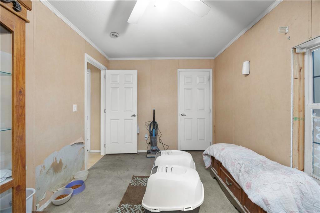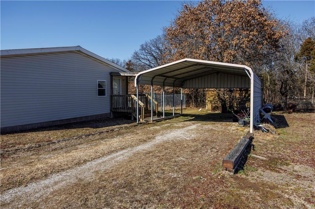 Sometimes all you really want is space, a good view, and a little peace and quiet. This 3-bedroom, 2-bath manufactured home sits on 27± fenced acres just west of Coffeyville with easy access to Hwy 166. The home offers a functional layout for easy living. In the living room you will find a wood-burning fireplace for cold winter nights. The eat-in kitchen has a small island with storage underneath. The primary bedroom has an en suite bathroom featuring a stall shower and jacuzzi tub- perfect for soaking the stress away. The land is fully fenced with a cattle guard by the house and chain-link fencing in the backyard, making it ideal for livestock or pets. A two-car carport and storage shed provide added convenience. The pond is the standout feature—perfect for fishing, relaxing, and enjoying quiet country evenings. The home does need some updates, including hail-damaged siding on the west side and carpet replacement, offering buyers an opportunity to update and add value. A deck in the backyard is ready for repair and personalization. This property offers open pasture, scenic views, and peaceful country living with close proximity to town. Call to schedule a tour today!