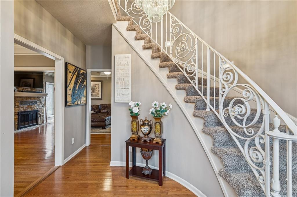 Step into exceptional scale and style with this impressive 4-bedroom two-story home that delivers space, character, and versatility at every turn. A striking grand entry sets the tone, welcoming you into formal living and dining spaces featuring hardwood floors, crown molding, large windows and an elegant, flowing layout. The main living room is a true showstopper with coffered ceiling detail, a beautiful stone fireplace, and wood floors opening to the kitchen with granite countertops, ample cabinetry, double ovens, a custom pantry and an eat-in area with a tray ceiling. An adjacent room provides flexibility for a formal dining area or home office. The oversized primary suite feels like a private retreat, complete with a sitting area and spacious en-suite bath offering double vanities, a soaking tub, and separate shower. Three additional bedrooms are located upstairs, while a finished room on the lower level offers the perfect space for a home office, exercise room or storage. The expansive walk-out lower level is an entertainer’s dream, featuring a second fireplace, large recreation area, and wet bar with plenty of room for a media space, game area, and lounge. Step outside to enjoy multiple outdoor living spaces, including a patio, elevated deck accessible from the main living area and kitchen, and covered gazebo overlooking the backyard perfect for outdoor living and summer evenings. Experience a home that combines generous square footage, timeless details, and flexible living spaces, ready to be enjoyed for years to come.