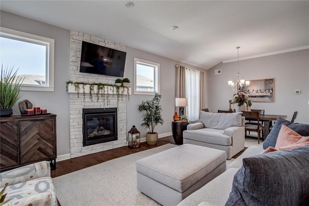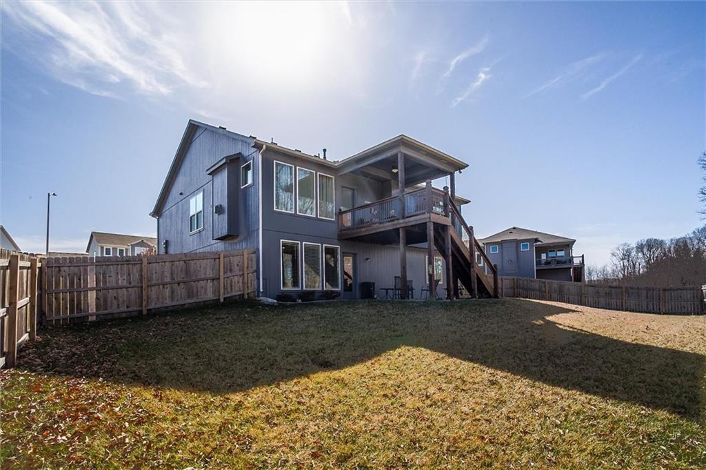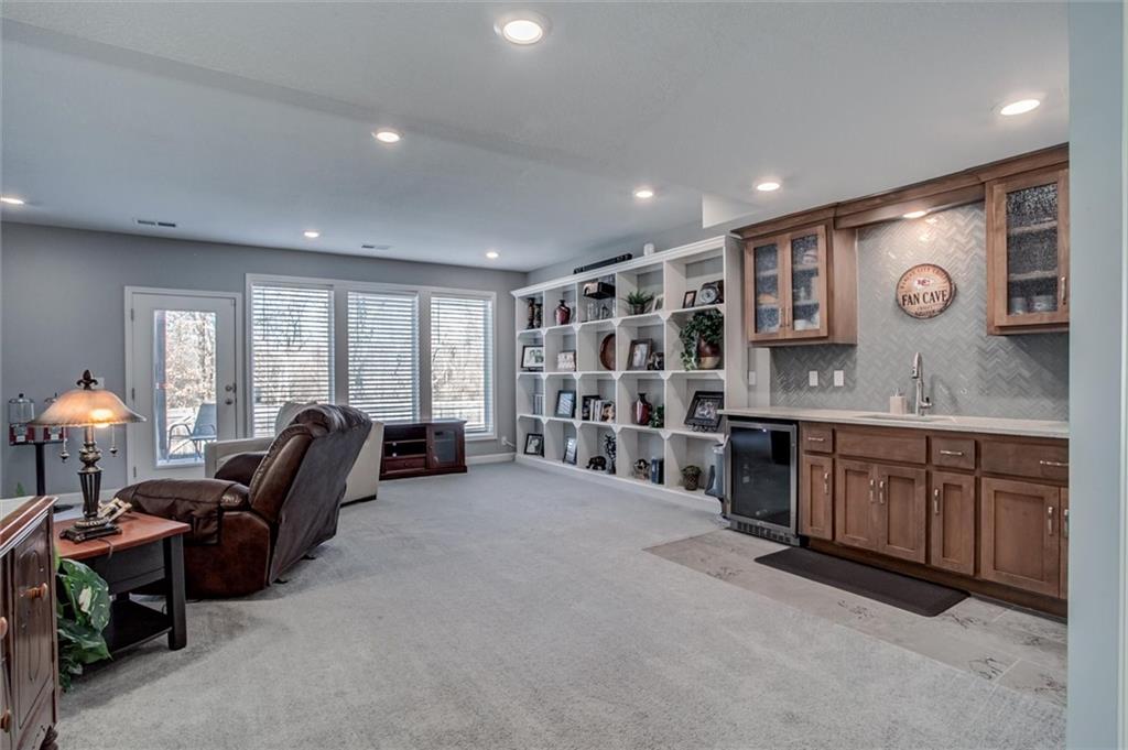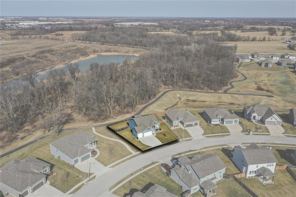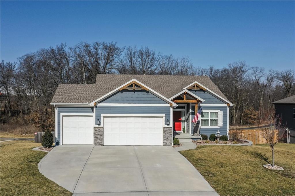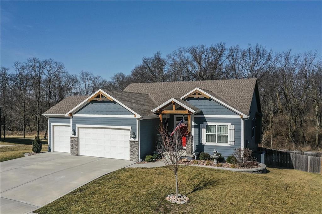 LOOKING FOR ELEGANCE IN THE NORTHLAND? Nestled in the highly sought-after Hawksbury community in Kansas City’s desirable Northland, this stunning reverse 1.5-story home seamlessly blends modern style, thoughtful design, and everyday functionality. Boasting 5 spacious bedrooms and 3 full bathrooms, this home offers flexible living with refined finishes throughout. The main level features a bright, open-concept layout highlighted by a light-filled living room, spacious dining area and a beautifully appointed chef’s kitchen complete with ample cabinetry, expansive counter space, and a generous walk-in pantry. The main level flows effortlessly to the scenic covered deck — the perfect setting for peaceful mornings, evening relaxation, or holiday hosting. The primary suite offers a private retreat with a spa-like en-suite bathroom and generous closet space connected to a convenient main-level laundry. Downstairs, the fully finished basement expands your living space with a large recreation area, wet bar, three additional bedrooms, a full bathroom, and plenty of storage. Whether you envision game-day gatherings, a home gym, guest quarters, or multi-generational living, this space delivers exceptional versatility. Enjoy outdoor living on a covered deck and lower-level patio that boasts a gorgeous, treed view. The fenced backyard conveniently connects to a nearby paved trail, perfectly placed to achieve your fitness goals. Located near shopping, dining, parks, and highly rated schools, this move-in-ready home combines comfort and convenience with luxurious, modern living.