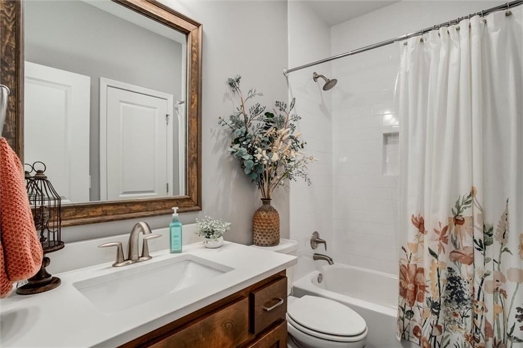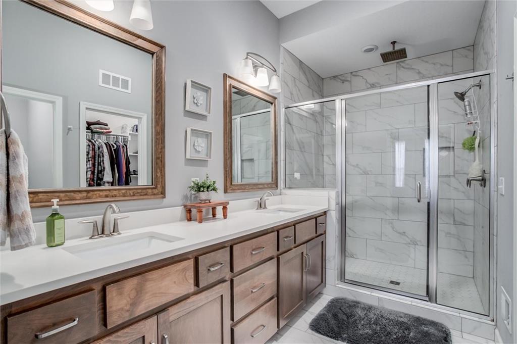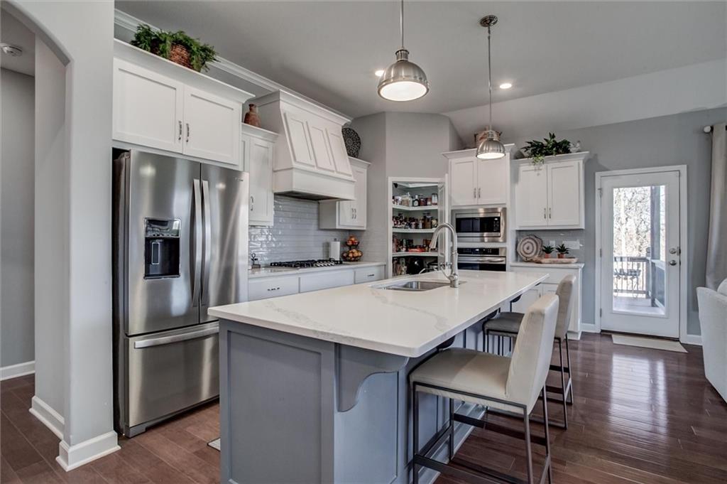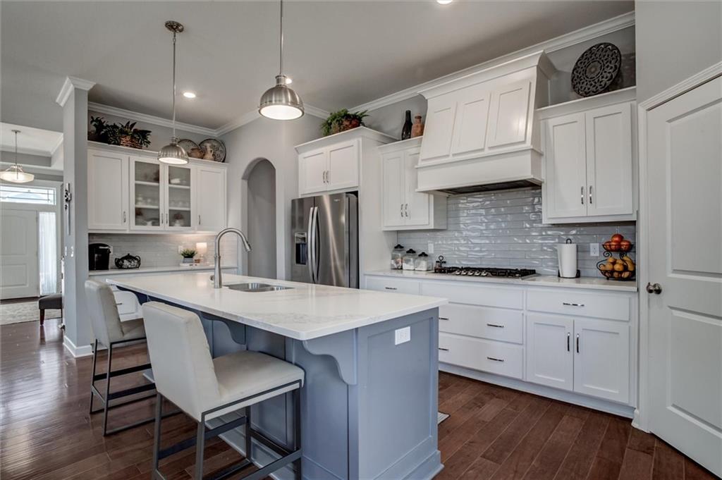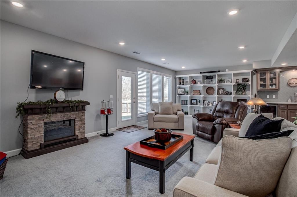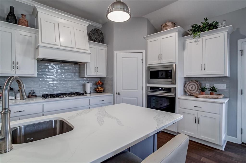 LOOKING FOR ELEGANCE IN THE NORTHLAND? Nestled in the highly sought-after Hawksbury community in Kansas City’s desirable Northland, this stunning reverse 1.5-story home seamlessly blends modern style, thoughtful design, and everyday functionality. Boasting 5 spacious bedrooms and 3 full bathrooms, this home offers flexible living with refined finishes throughout. The main level features a bright, open-concept layout highlighted by a light-filled living room, spacious dining area and a beautifully appointed chef’s kitchen complete with ample cabinetry, expansive counter space, and a generous walk-in pantry. The main level flows effortlessly to the scenic covered deck — the perfect setting for peaceful mornings, evening relaxation, or holiday hosting. The primary suite offers a private retreat with a spa-like en-suite bathroom and generous closet space connected to a convenient main-level laundry. Downstairs, the fully finished basement expands your living space with a large recreation area, wet bar, three additional bedrooms, a full bathroom, and plenty of storage. Whether you envision game-day gatherings, a home gym, guest quarters, or multi-generational living, this space delivers exceptional versatility. Enjoy outdoor living on a covered deck and lower-level patio that boasts a gorgeous, treed view. The fenced backyard conveniently connects to a nearby paved trail, perfectly placed to achieve your fitness goals. Located near shopping, dining, parks, and highly rated schools, this move-in-ready home combines comfort and convenience with luxurious, modern living.
