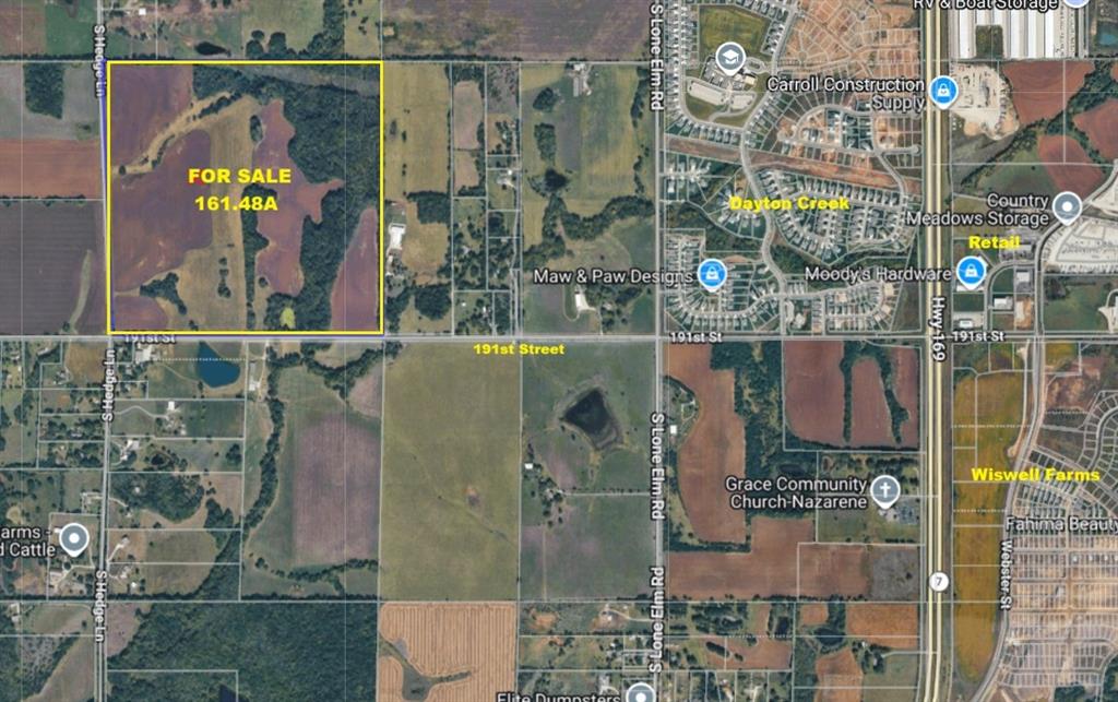 High Development Location. 1.5 miles to 175th Street and Hedge Lane to the new extra large Amazon warehouse and 1.8 miles to the new Coke manufacturing and distribution center. Large number of job creation in this location. Less than one mile East is Dayton Creek Elementary - approximately 2 miles East is Forest Spring Middle School and Spring Hill High School. Close to 169 Highway, 175th Street and I35. Easy access to Spring Hill, Gardner, Olathe and the Metro area. Great topography. Spring Hill can sewer this property.
