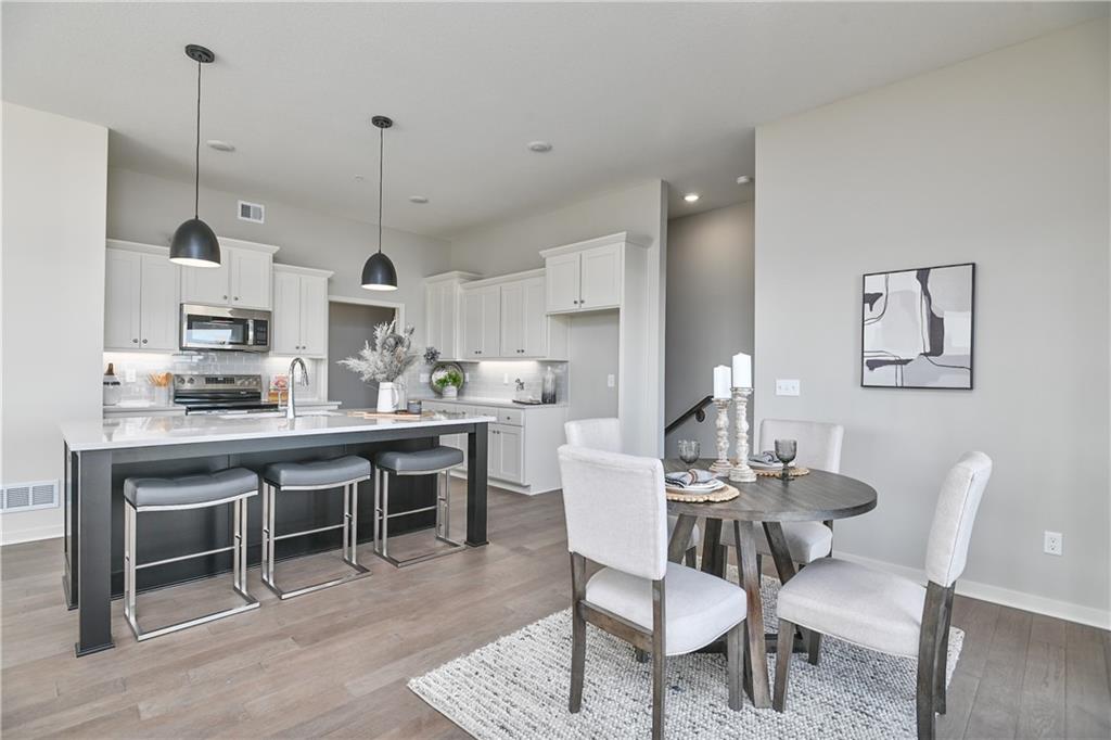 10,000 BUILDER INCENTIVE to be used as buyers choice of upgrades, closing costs, decor, etc!!! Must be under contract by 04/01/2026 Move-in Ready Maintenance Provided Ranch Villa! This stunning home features an open floor plan with 10’ ceilings, hardwood floors, and a light-filled living room with stone fireplace. The gourmet kitchen includes stainless steel appliances, custom cabinetry, under-cabinet lighting, and a walk-in pantry, plus a main-level mudroom and built-in desk area. The primary suite offers a walk-in closet and beautifully tiled bath. The lower level adds a spacious rec room with dry bar, two additional bedrooms, and a full bath—totaling four bedrooms. Lawn care, snow removal, and exterior maintenance (including roof) are all included