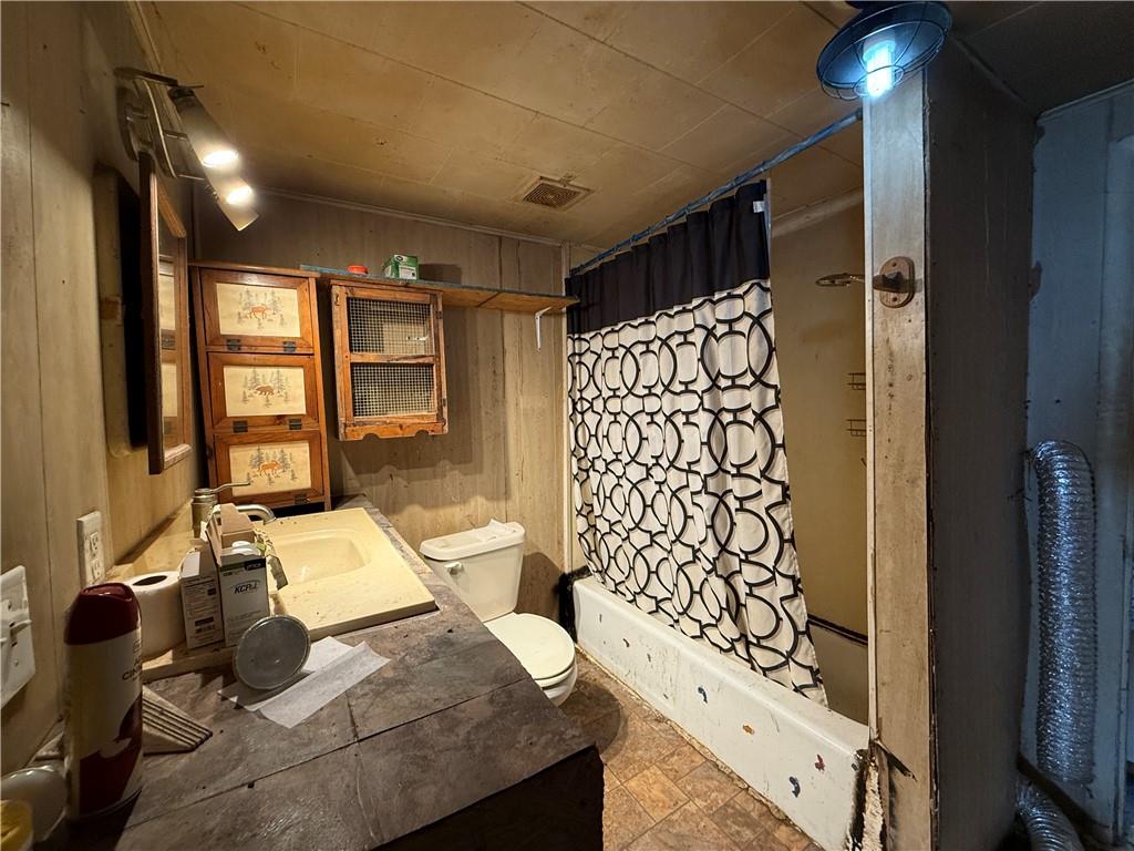 1920 Fixer-Upper on Corner Lot – Coffey, MO. Built in 1920, this 2-bedroom home sits on a corner lot at the edge of Coffey near the former OK Railroad corridor. The old rail line can still be traced in the surrounding landscape, adding a touch of small-town history to the setting. The home offers a traditional layout including a living room, dining room, kitchen, full bath, utility room, and enclosed side porch. Roof leaks after vacancy resulted in ceiling and plaster damage. Portions of the flooring have settled and will require structural repair. This property will need extensive renovation and is not move-in ready. Priced to reflect condition. Sold as-is. Ideal for investors or buyers looking for a restoration project in a quiet rural community.