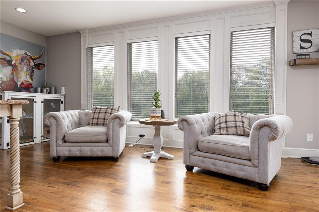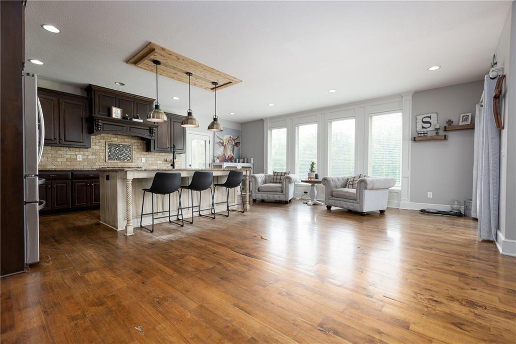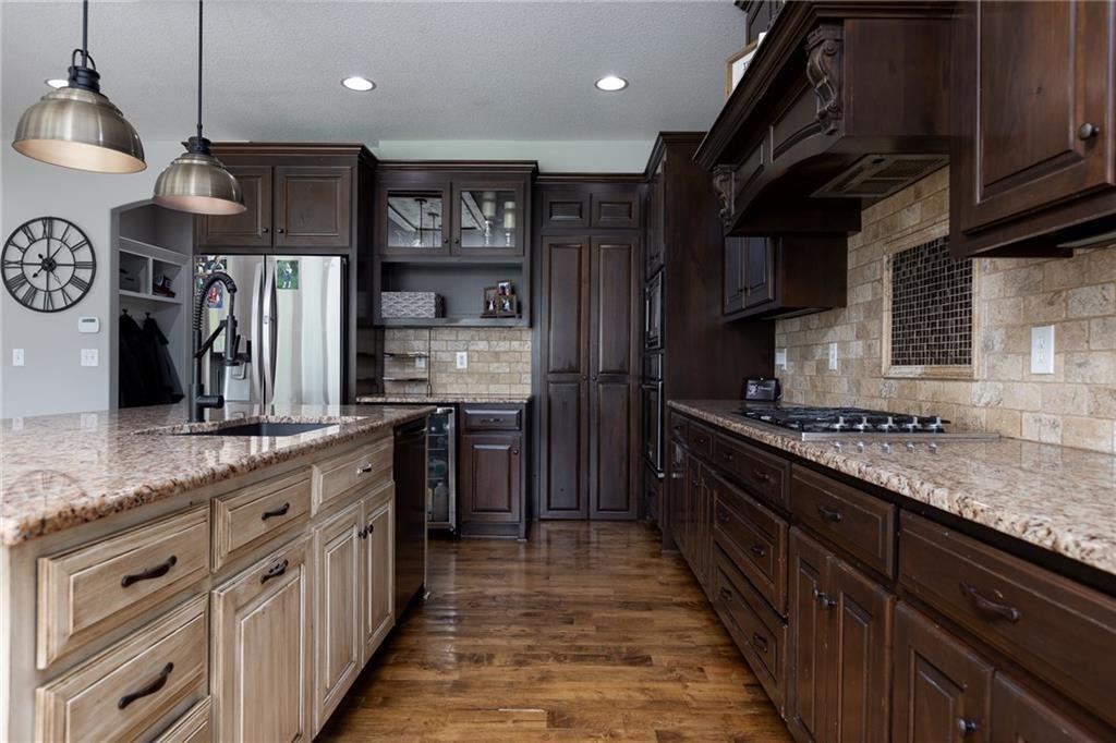 OPEN HOUSE CANCELLED FOR 3/1 DUE TO ILLNESS SELLER IS OFFERING $15,000 in seller paid closing costs!!! Welcome to 13017 Kelli Dr in the Oakbrook subdivision of Kearney. This 5-bedroom, 3.5-bath home sits on 1.25 acres in a cul-de-sac and backs to HOA green space, offering both privacy and room to spread out. The main level features an open layout with hardwood floors, a gas fireplace, and a spacious kitchen with a large island, custom cabinetry, new backsplash and a walk-in pantry with convenient garage access. Upstairs, the primary suite includes a walk-in closet, jetted tub, and separate shower. Additional bedrooms are generously sized. The finished walk-out basement adds flexible living space with a wet bar, full bath, and extra bedroom—ideal for guests or entertaining. Enjoy outdoor living with two decks, including a covered area with ceiling fans, plus a large yard and fire pit. Located in the Kearney School District with easy access to local amenities and highways. Agent/Owner