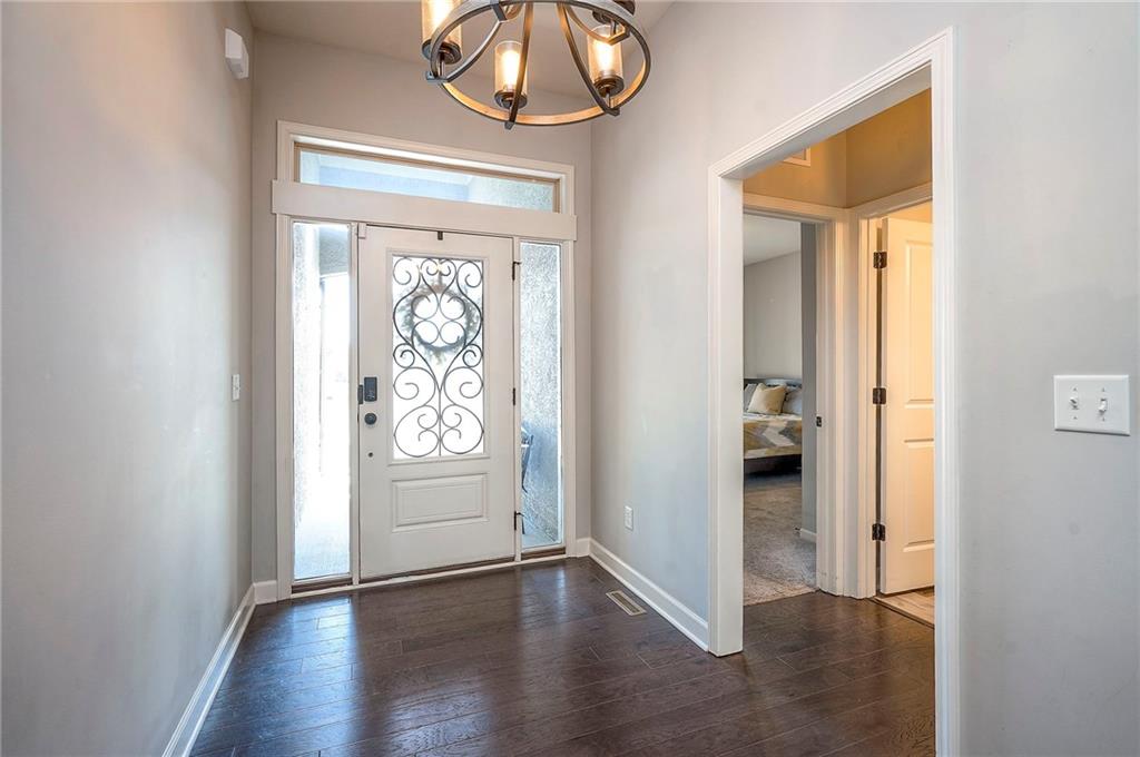 Beautiful ranch in Foxwood Ranch featuring an open floor plan with all 3 bedrooms conveniently located on the main level. The luxury kitchen showcases painted cabinetry, granite countertops, tiled backsplash, wood floors that flow through the kitchen, dining area and great room, plus upgraded brushed nickel plumbing fixtures for a modern touch. Enjoy outdoor living on the 14x10 covered patio with an extended stamped concrete patio, and irrigation system. Maintenance-provided living covers lawn care, fertilizer treatments, sprinkler system maintenance and snow removal. Additional highlights include a 3-car garage and a prime location just 10 minutes to Garmin or I-35, minutes to Sycamore Ridge Golf Course and Hillsdale Lake, and just a few blocks to Wolf Creek Elementary and Spring Hill High School. Community amenities include a state-of-the-art pool, clubhouse, playground and scenic trails — offering comfort, convenience and low-maintenance living all in one. Basement is ready for your design as it includes an egress window and is stubbed for a bathroom.