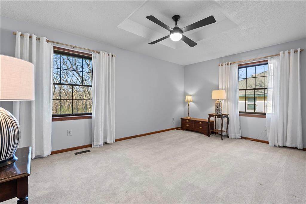 Discover the perfect blend of comfort and versatility in the beautiful 4-bedroom, each with a walk-in closet, 4.1 bath ranch, reverse ranch. Designed for multi-generational living, it offers two living quarters on both the main level and the walk-out lower level-ideal for in-laws or extended family. The main level offers a welcoming living room, elegant dining room, and a beautiful rec room with a fireplace. A separate laundry room combined with a half bath and a surprise home office separated from the rest of the home, with a beautiful outdoor view. New designer carpet flows throughout the first floor, and high-end lighting adds sophistication in every room. Step outside to a spacious 20X13 deck off the kitchen, which overlooks a serene, fenced backyard, walking trail and park, perfect for relaxing or entertaining. No backyard neighbors. Downstairs, the walkout level boast another full kitchen, a family room with a fireplace, two additional bedrooms, two full baths and a 20X13 covered patio. New garage doors and openers, carpet, lighting, interior paint all 1-year-old. Nestled in a quiet neighborhood with no thru streets on one of 2 Cul-d-sacs. Lots of storage throughout the home, including 34X13 unfinished room in the basement. The home is 5-10 minutes from DTLS, shopping, restaurants, entertainment, and many city parks. Location cannot be beat. This home stands apart, ready to welcome you home. SQ FT to be verified by buyer or buyer's agent.