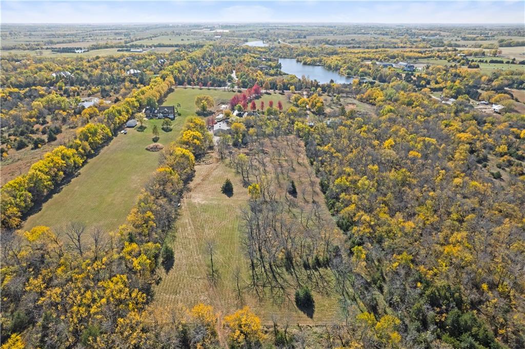 Welcome to this 10 acre estate in prime Overland Park location! Nestled at the end of a long private drive lined with vibrant October Glories, this timeless 4 bedroom, 4.5-bath home has been meticulously maintained and offers the perfect blend of luxury, charm, and privacy all just minutes from 69 highway. Set on 10 breathtaking acres backing up to 31 acres of wooded conservation land, this estate offers serene views, a pond, and endless possibilities for recreation or future development. The heart of the home is the open and bright main level featuring formal dining, formal living room, office, hearth room with see-through fireplace and a beautiful updated kitchen featuring top-of-the-line appliances, double ovens, induction cooktop, oversized island, and a spacious walk-in pantry. Upstairs, newly installed wood floors flow throughout the hallway and into the primary suite offering an expansive sitting area with fireplace, large primary bath and oversized walk in closet. Three additional bedrooms are upstairs, each with their own dedicated bathroom and walk in closet. The finished walk out lower level includes a second kitchen area, media room, home office, and additional living space. Outside, you'll find a beautifully maintained drive through barn that houses a fully updated kitchen complete with granite countertops, custom cabinetry, and a walk-in cooler room ideal for hobbies or catering needs. Store outdoor equipment, machinery, and cars in this expansive barn with separate shop and stairs leading to an upper level for additional storage space. Along with a list of updates, the exterior was freshly painted along with a new hot water heater installed last year. Just minutes from 69 Highway, and within the Blue Valley School District this rare home offers easy access to top-tier shopping, dining, and everyday conveniences. Whether you’re seeking a private family estate or land with development potential, this property offers it all! Open House 3/14, 1:00-3:00pm