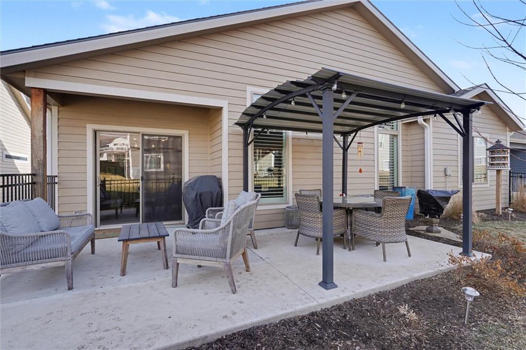 This home still feels new with all the upgrades in popular Hutton Farms. Plantation shutters, gas range, covered patio on the back with rocking chairs greeting you on the front. Drippe Construction created this open concept floor plan with high vaulted ceiling and cross beams. Master closet flows through to the laundry room. Gated community with HOA that covers snow removal of streets, lawn care and sprinkler system. Homeowner responsible for grass inside of the fence.