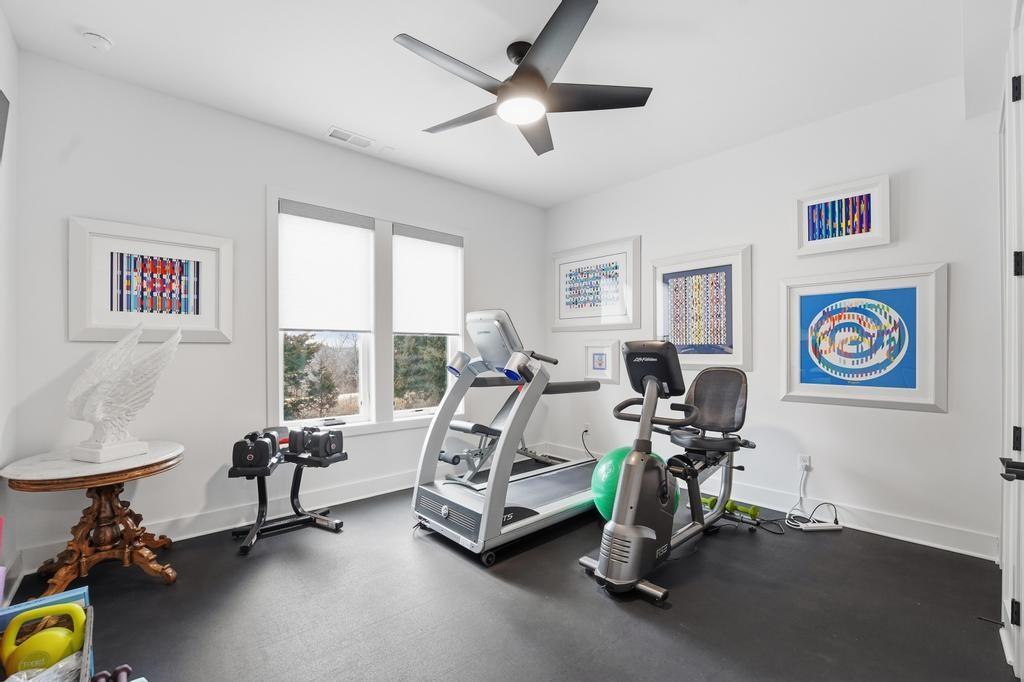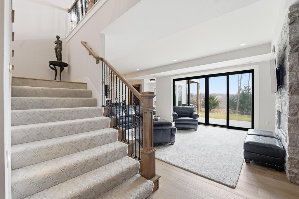 Almost new and lightly lived in, this custom-built home offers elevated design, thoughtful upgrades, and effortless living in the resort-style community of Cedar Creek. Perfectly positioned backing to Hole #5 tee box of the award-winning private Shadow Glen Golf Course, the setting offers both beauty and privacy. Inside, the light-filled, open floor plan showcases modern wide-plank luxury wood flooring, LED lighting throughout, & motorized shades. As you enter the home, your eyes are immediately drawn to the large wall of windows overlooking the golf course in the great room with vaulted ceiling, stunning fireplace and built-ins. The gourmet kitchen features a large quartz island, walk-in pantry, and GE Café appliances with striking copper hardware including a gas range, refrigerator, microwave, beverage fridge, and dishwasher. The laundry room offers a convenient sink and built-ins. Designed for comfort, you can relax on the screened-in porch with fireplace and TV. The spacious primary suite has wood floors and lighted tray ceiling. The spa-inspired bath has a large tiled shower, soaking tub, under-cabinet lighting, and a large walk-in closet with built-ins & dedicated makeup/vanity area. A second main level bedroom also features luxury wood flooring. The stunning lower level, complete with modern fireplace and a full wet bar featuring honed quartz counters, wine fridge, microwave, dishwasher, sink, and ice maker is perfect for gatherings with friends and family. Two additional bedrooms in the lower level with a shared bath are perfect for guests. A huge finished storage closet with custom built-ins provides exceptional organization. Additional upgrades include a recirculating water system, two 50-gallon water heaters, electric vehicle charger hookup, epoxy garage floor, sealed driveway, buried drains, and striking stucco and stone exterior. Maintenance-provided services include lawn care and snow removal. This is refined, low-maintenance luxury living at its best.