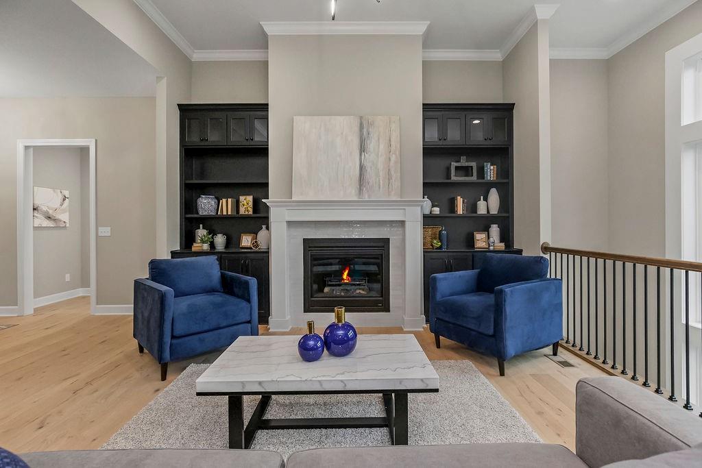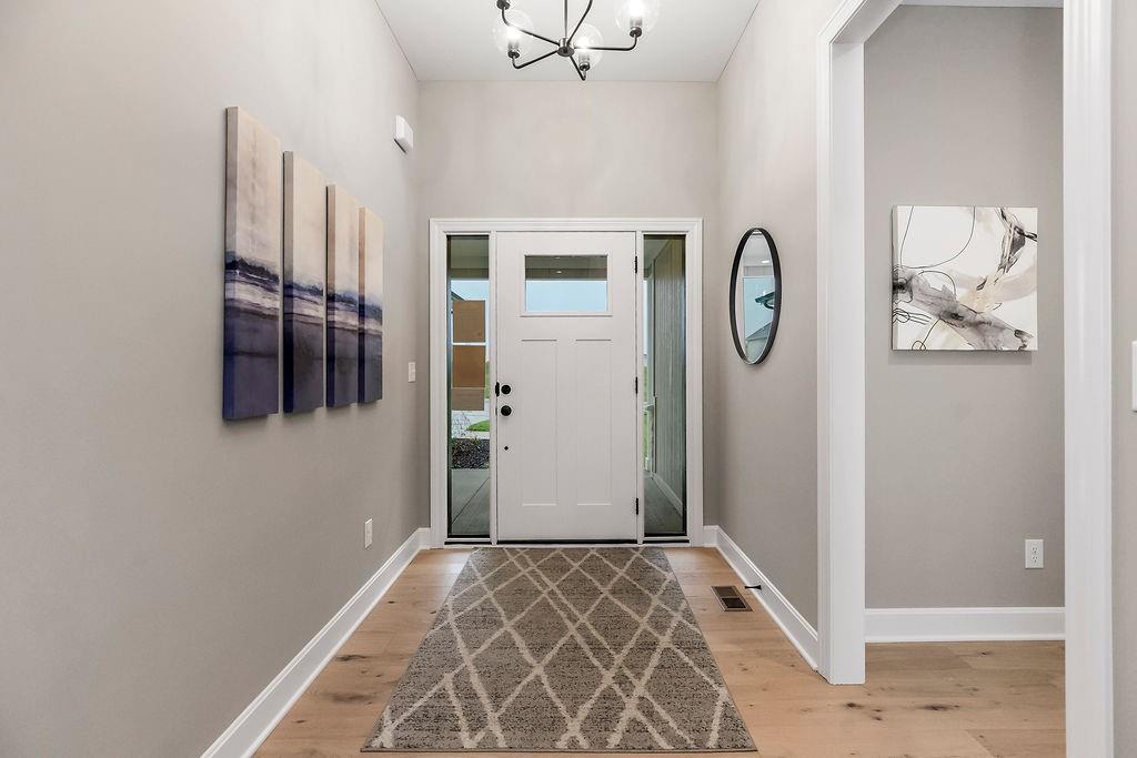 The Tatum Reverse by New Mark Homes Kc sits on lot 7 in Southern Meadows. Stunning reverse plan on a quiet cul-de-sac lot! This home is a true showstopper from the moment you arrive, welcoming you with its charming front porch and beautiful curb appeal. The thoughtfully designed layout offers exceptional privacy, with the primary suite located on the opposite side of the home from the secondary bedroom. The great room and kitchen are filled with natural light, creating a warm and inviting atmosphere. The spacious kitchen features a large center island, perfect for entertaining or everyday living. Step outside to the oversized covered deck — the perfect setting for hosting a girls’ night or enjoying a relaxing evening outdoors. The finished lower level is designed for fun and functionality, offering two additional bedrooms and a generous recreation room ideal for football watch parties, complete with a convenient back bar for easy entertaining. Home is currently at Mechanical stage and approximately 120 days out.
