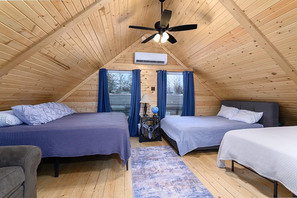 BEAUTIFUL 2-BED 1-BATH LAKE HOME ON DOUBLE LOT WITH BIG GARAGE FOR YOUR BOAT OR RV! This move-in ready getaway comes fully furnished and includes all appliances, so you can start enjoying the lake right away. Inside, you’ll love the hardwood floors and rustic wood walls, ceilings, and beams in the vaulted spaces, plus a cozy open living area with a loft bedroom that looks out over the main room. The covered front porch is a great spot to relax after a day on the water. Outside, there’s a 16x28 carport and a 28x40 metal garage that’s perfect for storing your boat, RV, or lake toys. The gated community offers 2 pools, putt-putt course and golf course and clubhouse. Plus it is a pivate lake, no registration for fishing or boating! The home sits on a double lot with second-tier lake access and is just a short walk to the water, giving you the lake lifestyle without the lakefront price. This is an easy, low-stress lake place ready for weekend fun or full-time living.