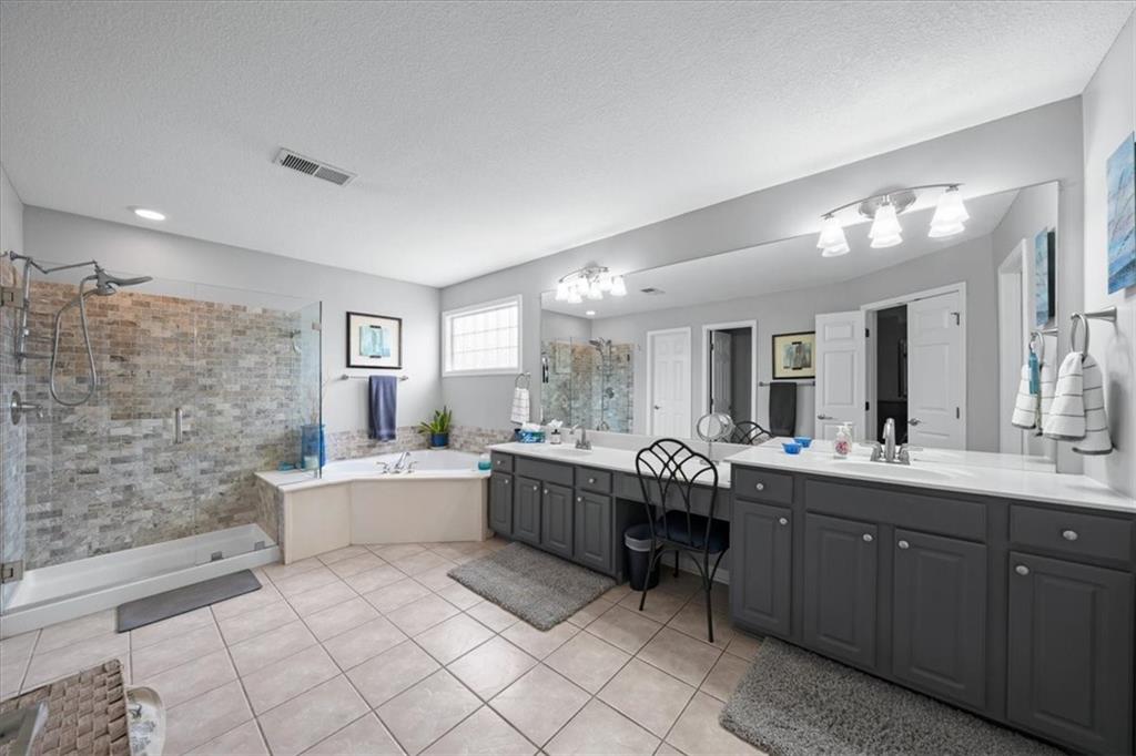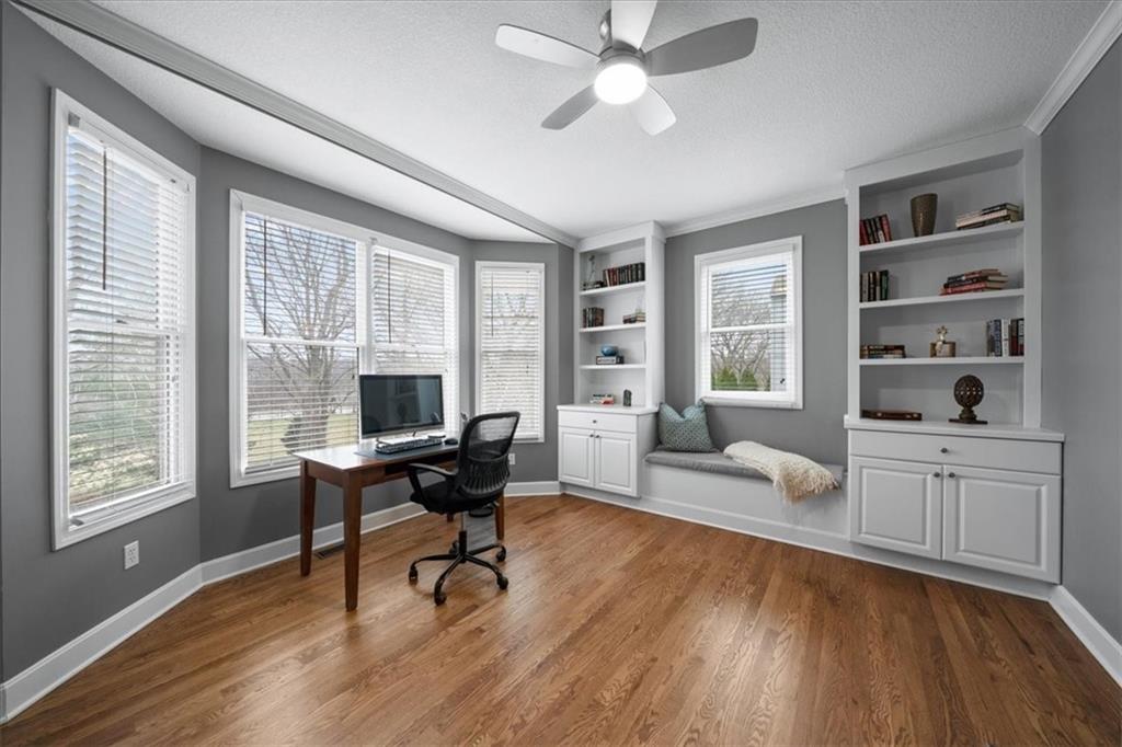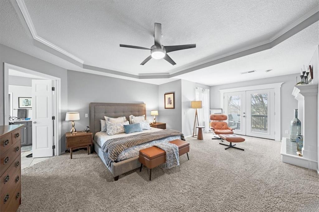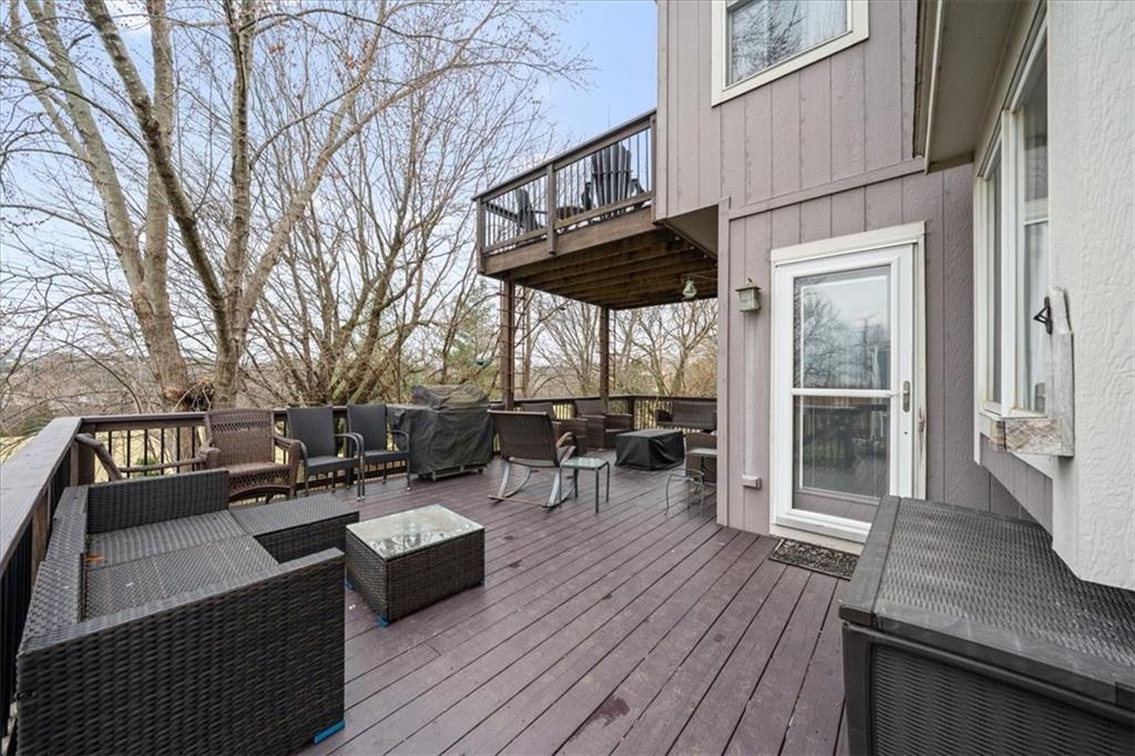 Check out this incredible opportunity in the highly sought-after Steeplechase subdivision—backing to Ironwoods Park for peaceful views and an outdoor setting you’ll love. Step into a grand entry featuring vaulted ceilings and a stunning spiral staircase. Open & inviting layout filled with tons of natural light and beautifully refinished hardwood floors throughout the main level (2026). Kitchen beautifully updated with painted cabinetry, quartz countertops, a large undermount sink, and stainless steel appliances, including refrigerator, double oven, cooktop & microwave. Plenty of places to eat & gather with a large formal dining room, eat-in bar, bright breakfast nook, and a cozy double-sided fireplace shared between the kitchen & living room. A generous deck just off the kitchen provides the perfect space to relax or entertain. Wet bar located just off the living room, plus a separate second living/family room and an additional office area with built-in bookshelves—ideal for working from home or enjoying a quiet retreat. Beautifully remodeled primary suite offers a spacious bathroom with a new tile shower, updated flooring and countertops, a large jetted tub, and two spacious walk-in closets for plenty of storage. The primary bedroom includes a cozy fireplace, a comfortable seating area, and its own private deck overlooking the serene backyard. Large walk-out basement with lots of natural light, an added full bathroom, and a walk-out to the back patio—perfect for entertaining, a home gym, game room, or additional living space. Enjoy a treed & fenced backyard with expansive views and a rare connection to the park-like setting beyond. Large three-car garage! Located in the award-winning Blue Valley School District, and just minutes from shopping, dining, and everyday conveniences.