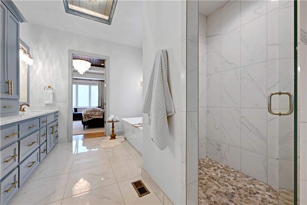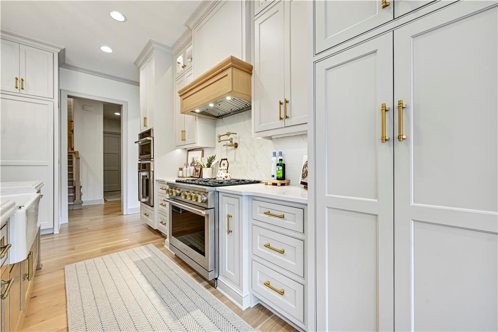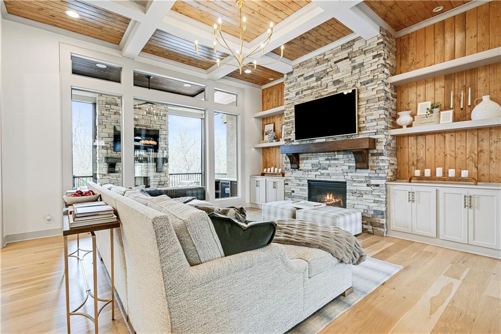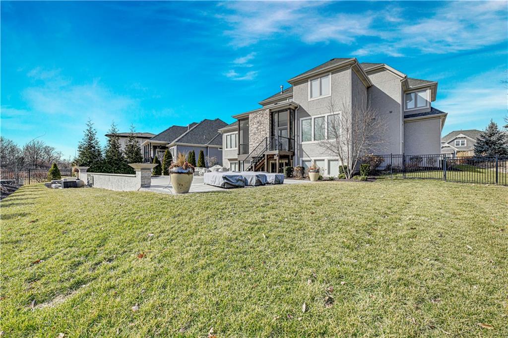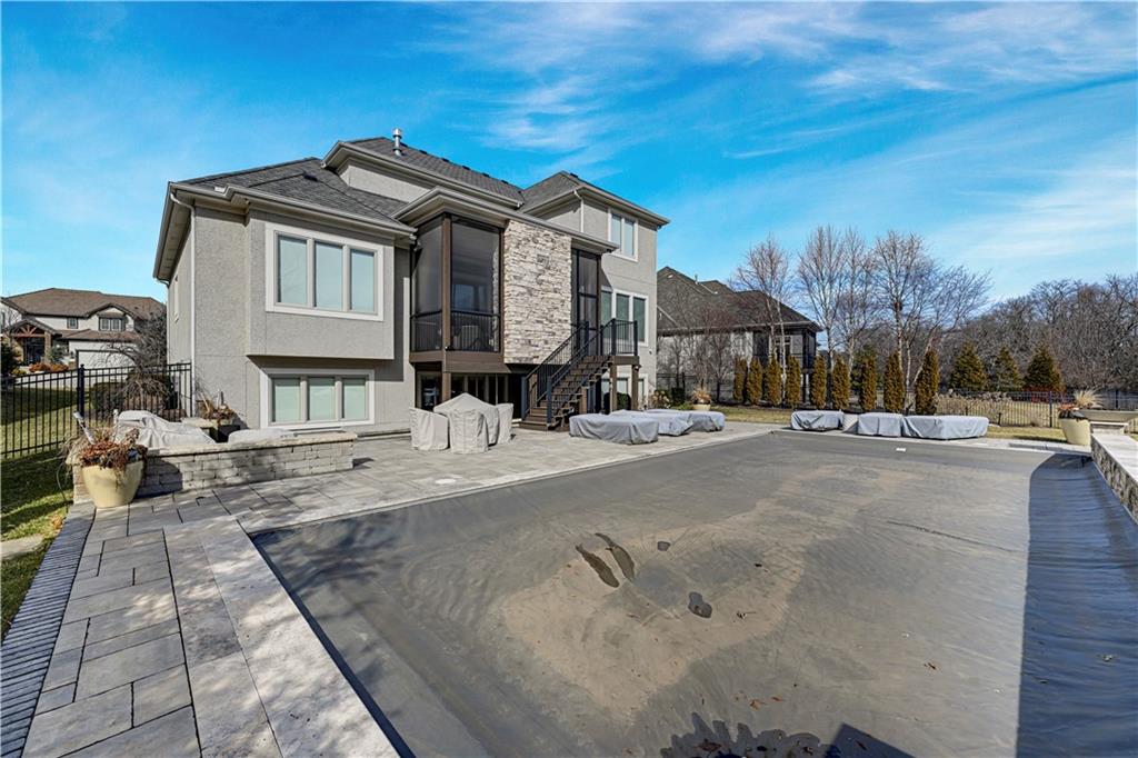 Completely reimagined by the original builder, John Geer and Erica Rigdon of Style & Grace Designs, this stunning Mills Farm 1.5-story with finished lower level is a masterclass in design. Wide plank hardwoods flow throughout, complemented by designer lighting, remote-controlled custom drapery & shades, and gold/brass fixtures at every turn. The main floor wows with a great room featuring stacked stone fireplace, built-ins, and a library-style Tongue&Groove ceiling. The chef's kitchen boasts quartzite countertops, a full-size built-in refrigerator & freezer, 6-burner gas range, pot filler, farm sink, pantry with full sink & ice maker in room adjacent to kitchen. All rooms have meticulously designed cabinetry. The screened porch with stone fireplace, beverage fridge, and staircase to the pool is an entertainer's dream. The private primary suite features a Tongue&Groove tray ceiling, spa bath with heated floors, soaking tub, double shower, and a fully redesigned closet. Continuing on Main Floor, there is a 2nd Bedroom and Full Bath. The Second Floor finds Three additional bedrooms each have en-suite baths, walk-in closets, and designer details. Plus a Loft with built-in cabinetry creates the perfect place to relax, enjoy a game or read. The lower level rivals a luxury resort — a show-stopping wet bar with exotic stone island, full-size fridge/freezer, ice maker & mirrored floating shelves anchors the space alongside a recration room with cast stone fireplace and flex/exercise room. 6th Bedroom and Bath is private retreat for guests or family. Outside, enjoy a gunite pool, extensive decking, covered lower-level pool entry, oversized front porch with bubble fountain, and a charming porch swing. Blue Valley Schools. This home cannot be replicated at this price