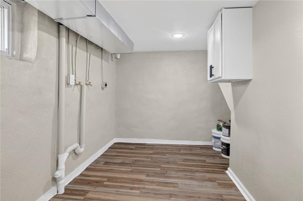 Completely rebuilt from the inside out, this fully renovated home delivers modern finishes and brand-new major systems for true peace of mind. This is not a cosmetic update — the HVAC, roof, windows, electrical, and plumbing are all brand new. The big-ticket items have been done. The main level features new luxury flooring, fresh neutral paint, and a bright open layout. The kitchen is fully updated with white shaker cabinets, sleek black hardware, stainless steel appliances, subway tile backsplash, and modern lighting. One bedroom includes its own private half bath — a rare and convenient feature. The beautifully finished basement adds valuable living space with a closet plus a full bathroom, making it perfect for an en suite bedroo, second living area, guest suite, office, or flex space. Outside, enjoy a fully fenced yard, off-street parking, and private rear access. With brand-new systems, designer finishes, and a finished lower level, this home offers style, function, and long-term value — all in one package.