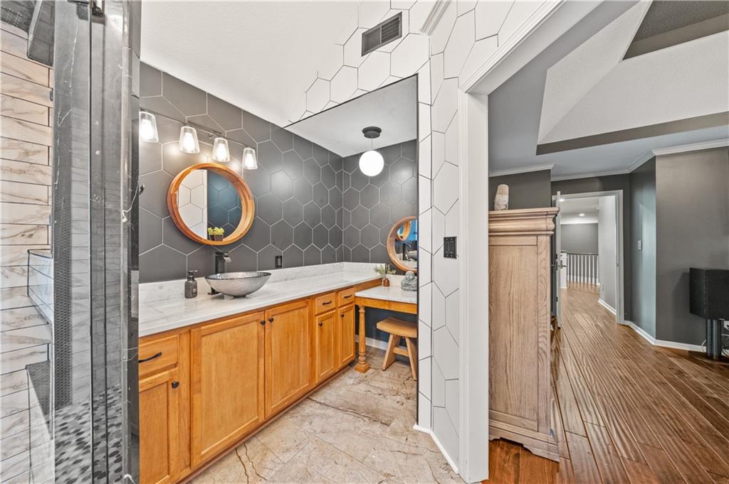 Welcome home! This stunning 4-bedroom, 3.5-bathroom home is located in the Oaks Ridge Meadows subdivision of Lee’s Summit. With its tasteful exterior color palette, this home draws your attention the moment you pull into the driveway. Once inside the front door, you are captivated by soaring vaulted ceilings and layers of design and modern colors thoughtfully enhancing each space. The main level of the home features a home office, living room, kitchen (with an abundance of cabinets), and a formal dining room as well as a breakfast nook overlooking the backyard. The laundry and drop zone areas are conveniently located by the entrance to the garage - have an electric vehicle?? We already have your charging station ready to go! All bedrooms are located upstairs including the primary suite which features an incredible en-suite bathroom that has been recently renovated. The huge walk-in shower with an over-sized rain shower head creates a spa-like experience you are sure to fall in love with. The lower level has space for everyone to enjoy including a dedicated home workout area complete with a mirrored wall. Wander around the corner and envision a theatre room, game room or use the space to create an office or build out an additional bedroom, if needed. Travel back upstairs and step out the door to an incredible backyard retreat featuring a stamped concrete patio with evergreen trees and a pergola providing shade and privacy - perfect for outdoor cooking and entertaining. This home is close to schools, shopping, eating and has exceptional highway access with I-470 located a short distance away. The multi-floor living spaces of this home coupled with its outdoor oasis provides the space and comfort to entertain or simply relax and unwind after a long day of work. Schedule your tour today and see why this home stands out!