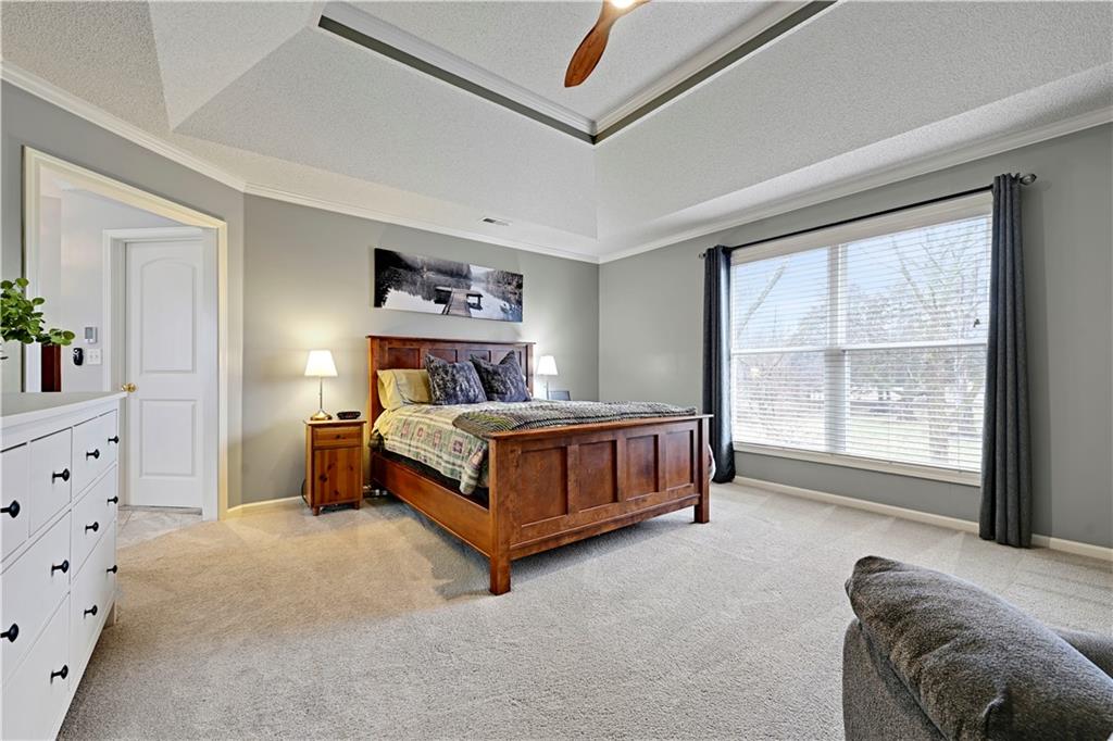 Stunning estate two-story home on 1.2 acres in a quiet cul-de-sac with extensive, mature landscaping! This 4 bedroom, 4 full bath home offers a spacious open floor plan ideal for everyday living and entertaining. The updated kitchen features custom cabinetry, a massive island, and abundant prep and storage space, opening to a light-filled great room with fireplace. The luxurious primary suite boasts a spa-like updated bath and an oversized walk-in closet. Spacious secondary bedrooms plus a private guest suite. The finished basement offers tons of natural light and an additional full bath—perfect for a rec room, home gym, or office. Enjoy energy efficiency with a geothermal HVAC system. Outdoor living shines with a massive patio and pergola, perfect for entertaining. A detached 19’x24’ garage with an 8’x12’ overhead door and floored attic provides excellent storage and workshop space. This rare estate-style property offers privacy, space, and luxury—don’t miss it!