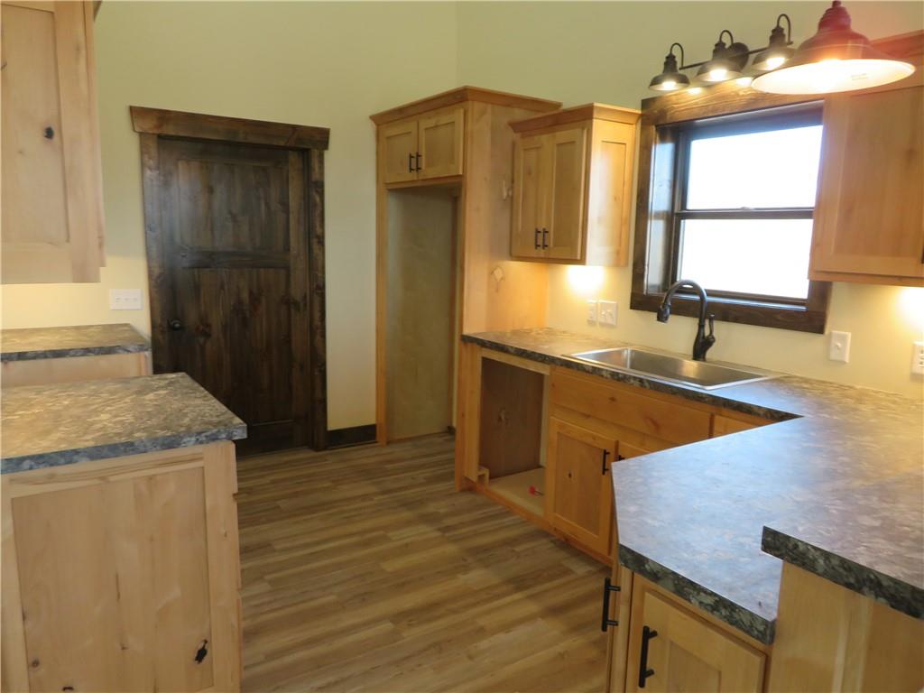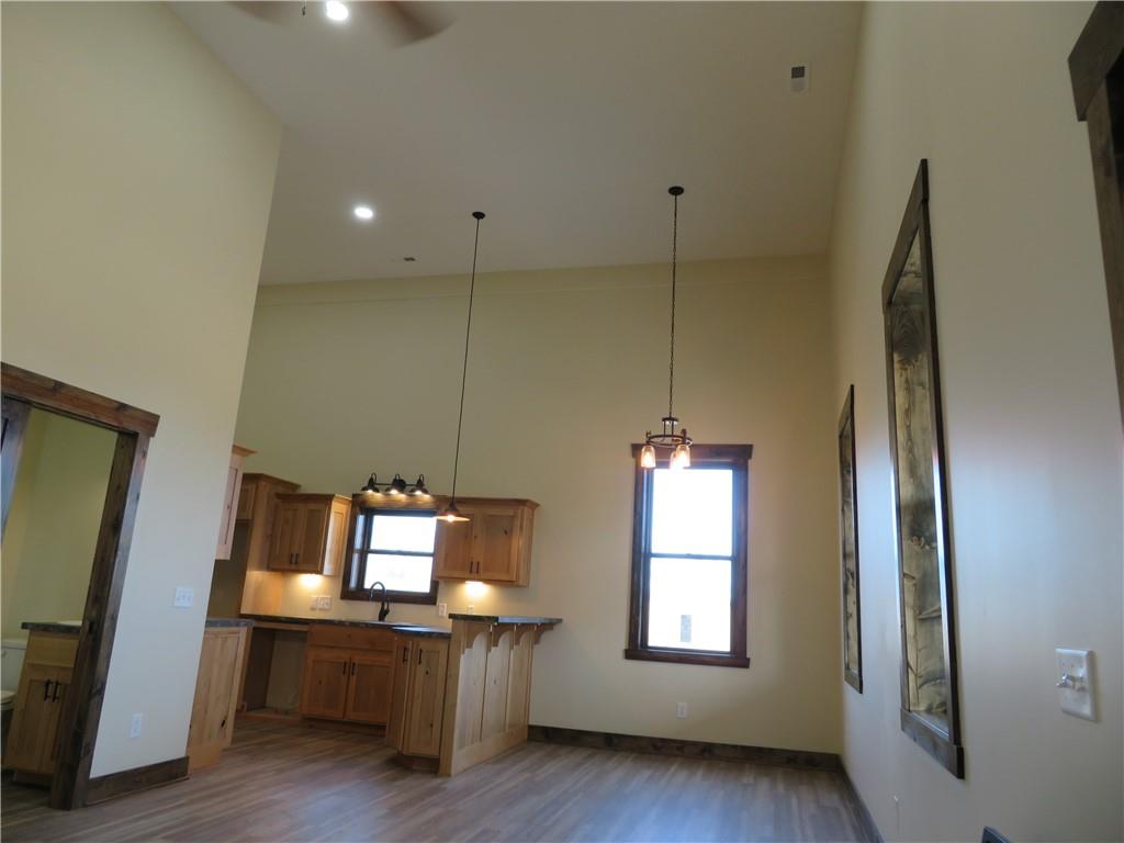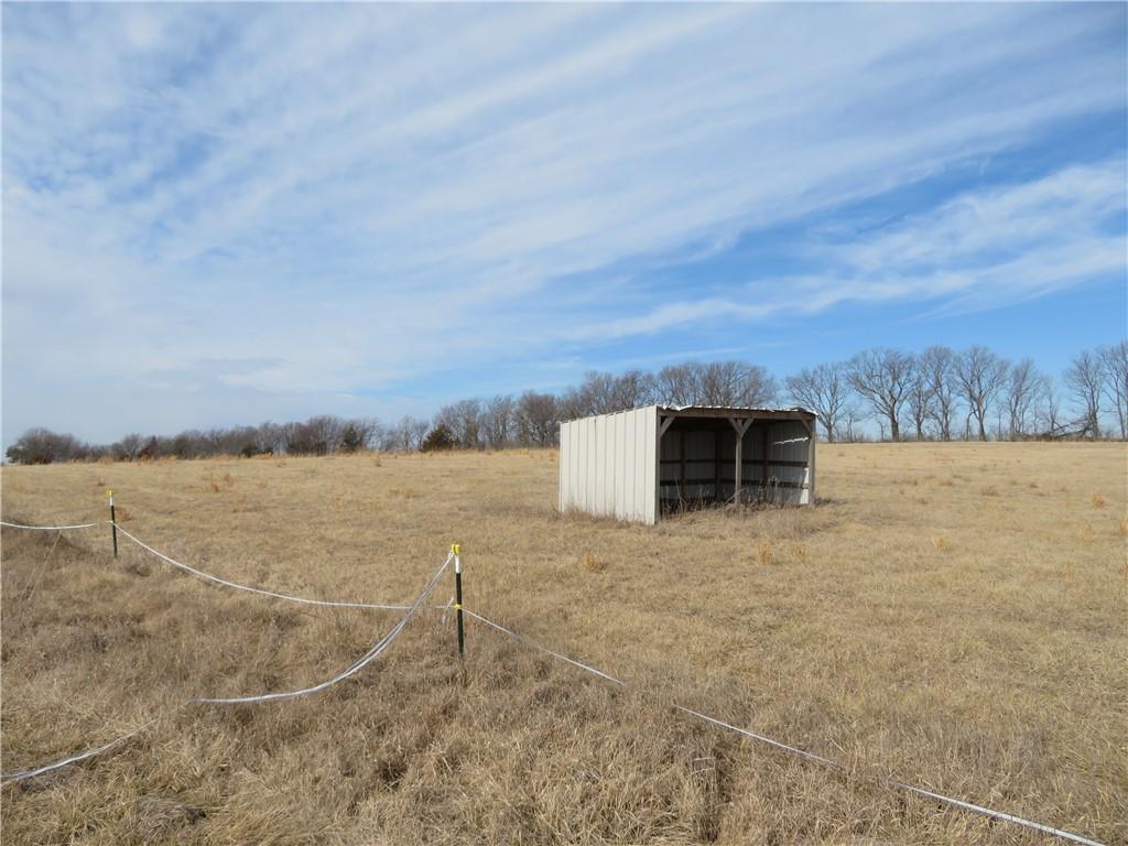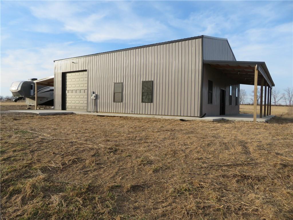 New, recently finished Barndominium on 12+-acres. 2bedroom, 2 bath, open floor plan. Custom kitchen & large, shelved pantry. Oversized primary suite w/enormous walk-in closet & large full bathroom w/extra cabinets for storage. Unique finishes, and light fixtures throughout. Covered front porch on east side is perfect for enjoying the views and Kansas sunrises. Oversized 35'x16' garage w/extra storage above finished space, 12' door perfect for large vehicle parking. 35'x15' attached lean-to has RV/camper hook-ups. Expansive 12+-acres w/nice pond, perimeter fencing & 3-sided shed for animal shelter. This property can easily be set-up for horses/livestock. Lovely country setting on paved road. Settle in and stay awhile!