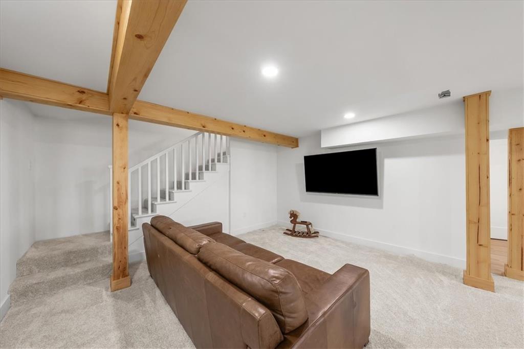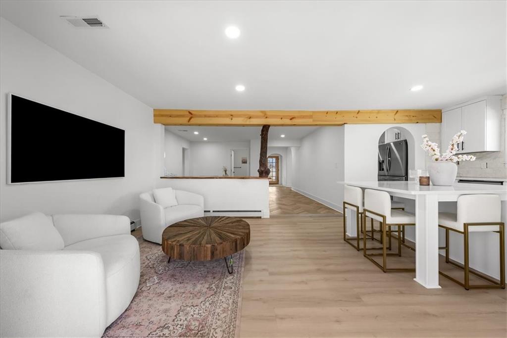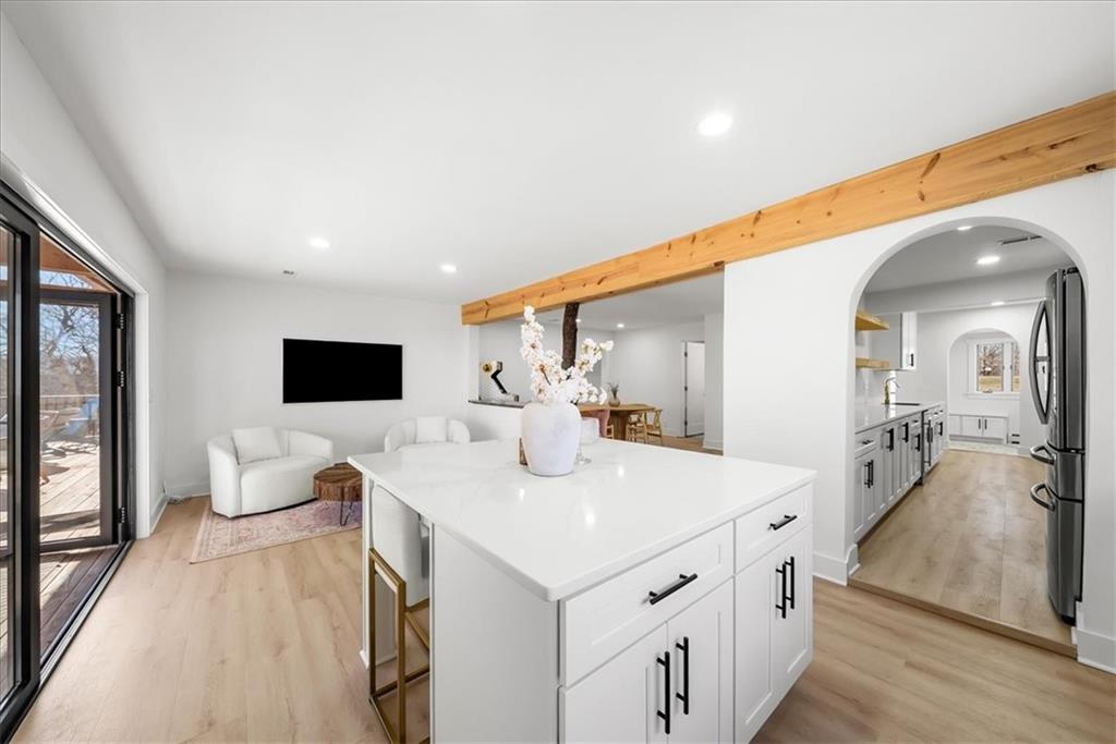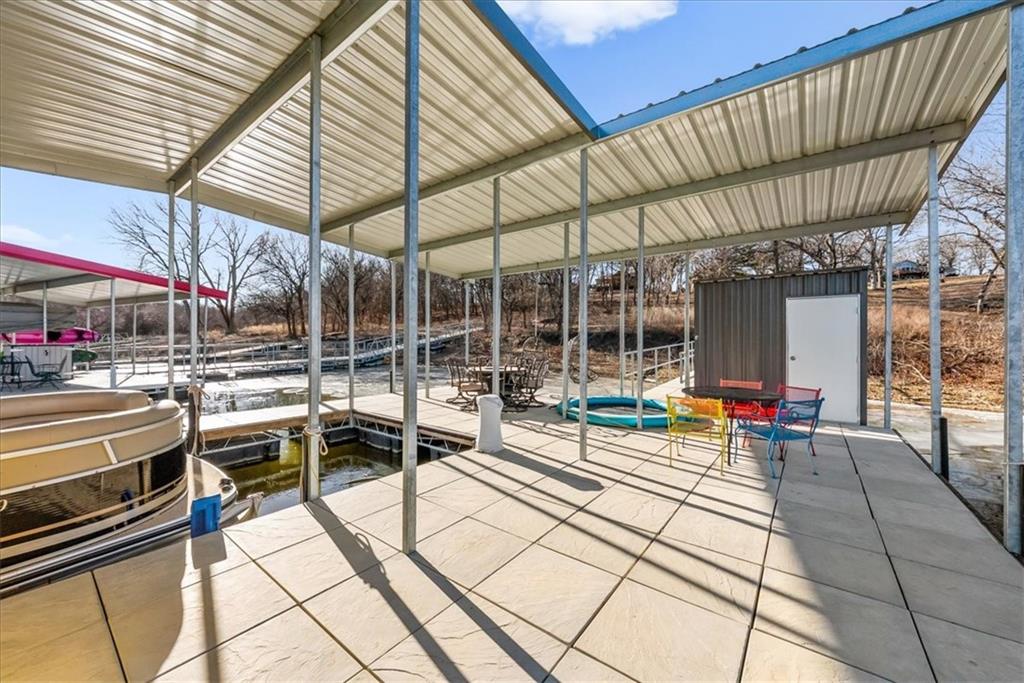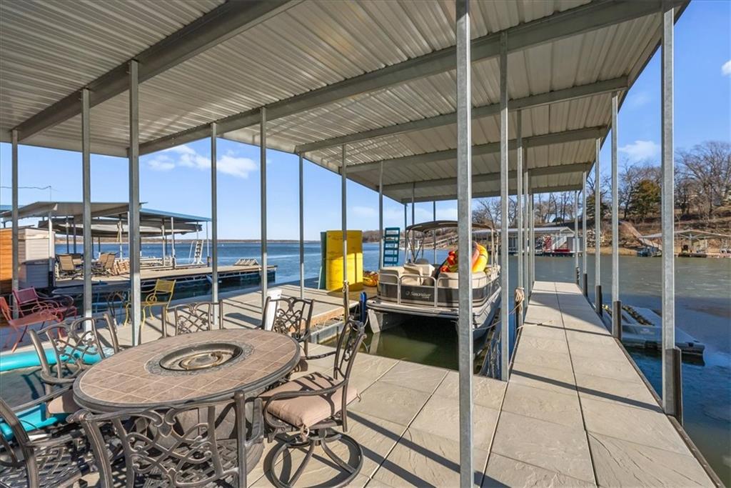 Welcome to your own slice of paradise at the lake! This stunning ranch-style lakefront home at Lake Pomona offers 5 bedrooms and 4 bathrooms, and has been meticulously updated and lovingly maintained. A marble-tiled entry welcomes you into an expansive eat-in kitchen featuring abundant prep space, extensive countertops, and a large center island with seating for four—perfect for gathering with family and friends. Just off the kitchen, a sitting room with louvered folding patio doors opens to a three-season room and onto a renovated deck overlooking the beautifully maintained grounds, complete with a putting green and tranquil pond. The formal dining room is conveniently located just steps away, making entertaining effortless. The main level includes a spacious primary en-suite retreat with a soaking tub, separate shower, and generous vanity. Two additional bedrooms and a full bath with double sinks and a walk-in shower complete the main floor. The finished lower level offers even more living space with a large family room, two additional bedrooms—one currently designed as a bunk room that sleeps eight—plus a full bath and laundry area. Step outside from the lower level to enjoy the fire pit and pathway leading directly to the double dock. Designed for making memories, this exceptional lakefront property is the perfect weekend escape for large families and year-round enjoyment.