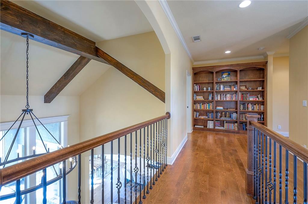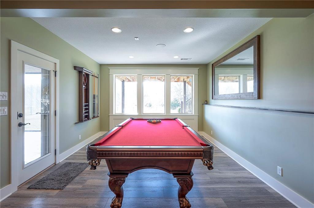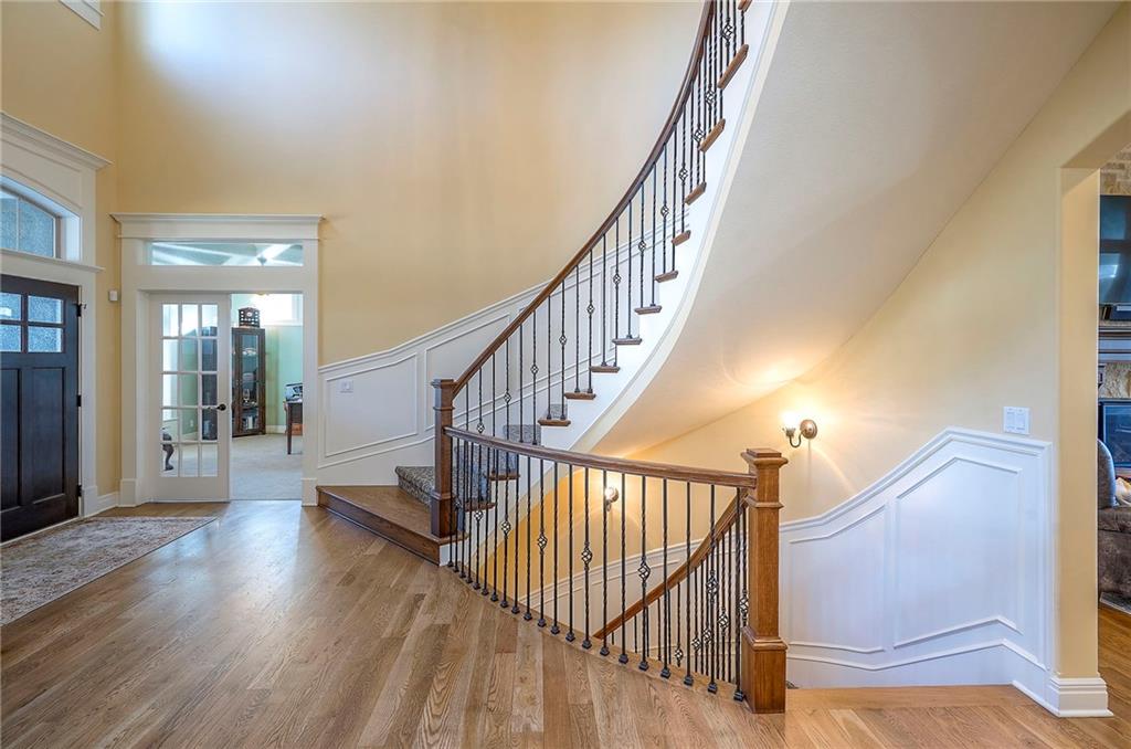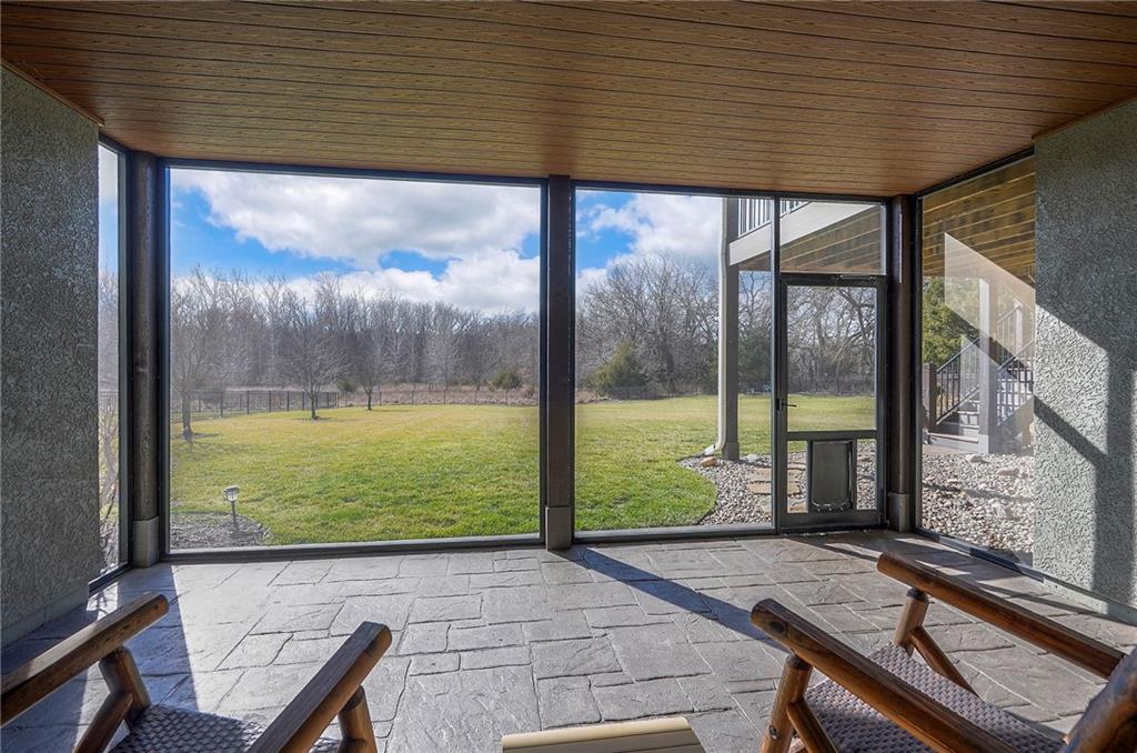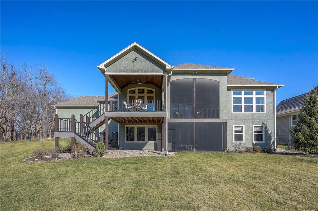 This may be The MOST DESIRABLE & REMARKABLE LOT in the whole subdivision of Polo Fields Reserve! This one-owner custom designed 1.5 story home has been meticulously built with 2x6 construction plus well- maintained. HUGE bonus for home backs to the Johnson County Parks & Rec Coffee Creek Steamway Trail! Covered Front Porch w/ Lush Landscaping greets you as you approach the Secluded Lot. The Grand Entry showcases the 2 story open concept layout. Den w/ French doors along w/ a Formal Dining Rm or Music Rm. The Great Rm is flooded w/ Natural Light & Soaring Ceilings w/ detailed beams. The layout continuously flows into the Chef’s Gourmet Kitchen w/ more beams in the Breakfast Rm. An Impressive & Well-Designed Butler’s Pantry & Walk-in Pantry are off the kitchen & a spacious mudrm w/ more built-in lockers for all of one’s needs is off the garage. There is no lack of storage or space in the Oversized 4 car Garage w/ Epoxy Floors. The Primary Suite is just as Pristine w/ designer wallpaper & custom drapes. The Primary Ensuite also has uncompromising quality that will not disappoint. The secondary bedrms on the second level are spacious, each having its own ensuite & walk-in closet. There is also a bonus/rec rm on the second level as well. The Walkout Lower Level is just as enchanting w/ floor to ceiling windows which allow for natural light. An impressive Wet Bar is the perfect place for entertaining a crowd or intimate enough for a smaller setting. The Recreational Area is the perfect place for a game of pool (not included). The Family Rm features a Rustic Barn Wood Wall. In addition a 5th Bedrm w/ its own ensuite, plus an Exercise Rm. The Fenced Backyard backs to GREEN SPACE plus NO neighbors behind the home or to the west. Relax in one of 3 outdoor entertaining areas: the covered screen deck w/ fireplace and TV, the covered deck w/ vaulted ceiling on the upper level, or the lower level screen patio. Tons of storage throughout! This home will not disappoint.