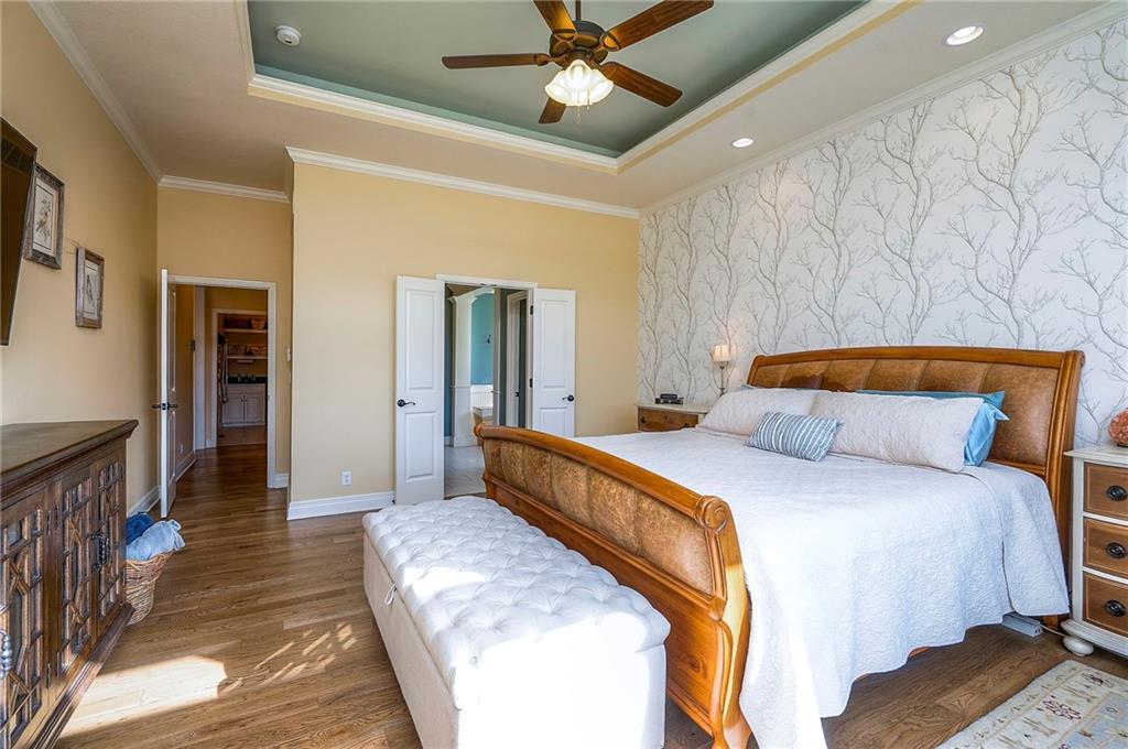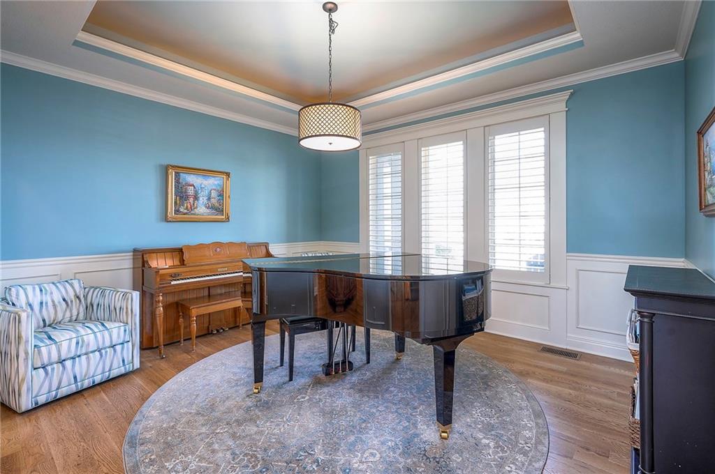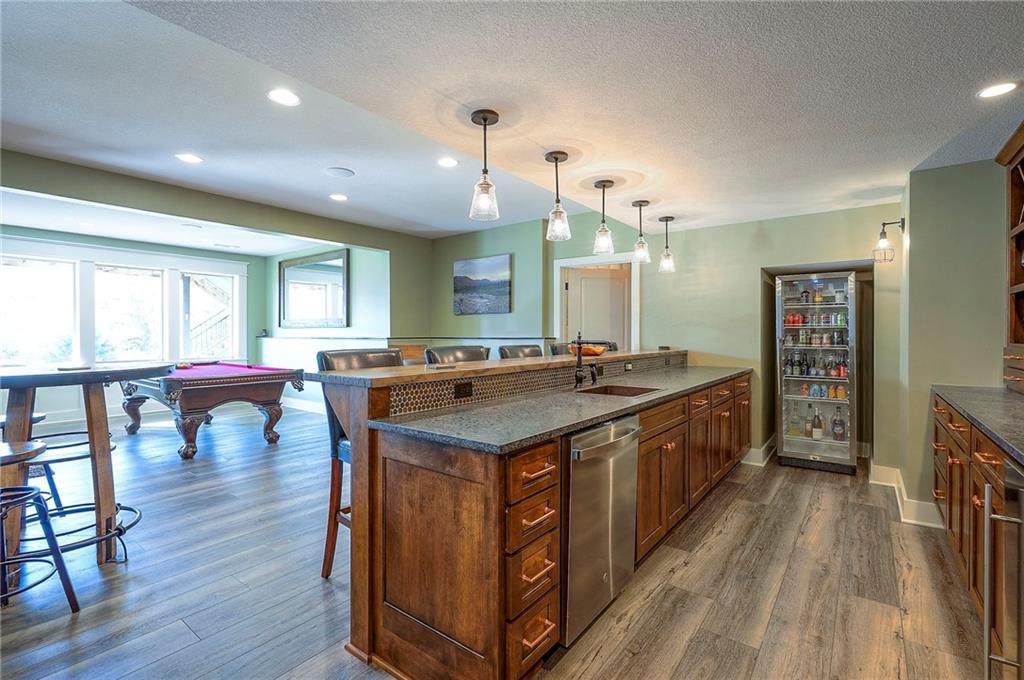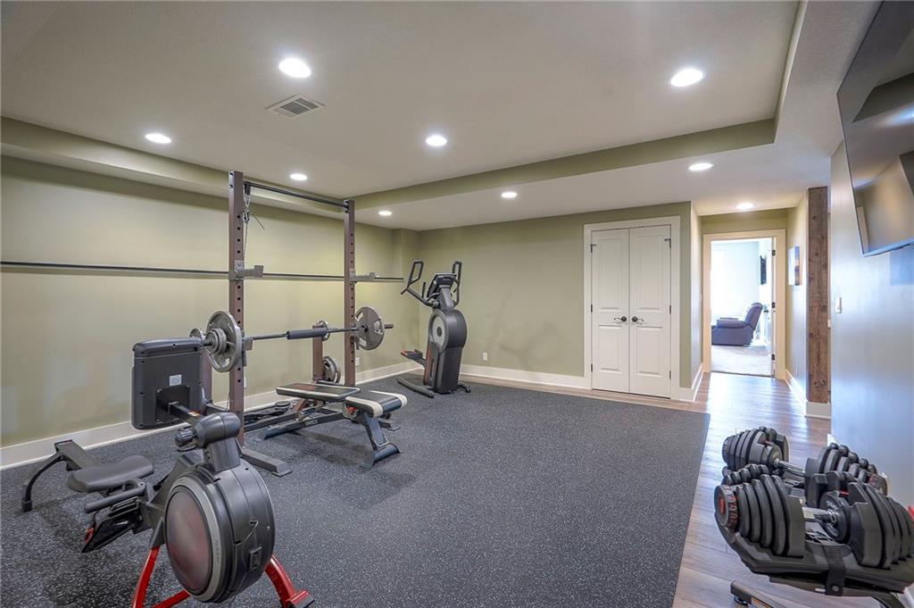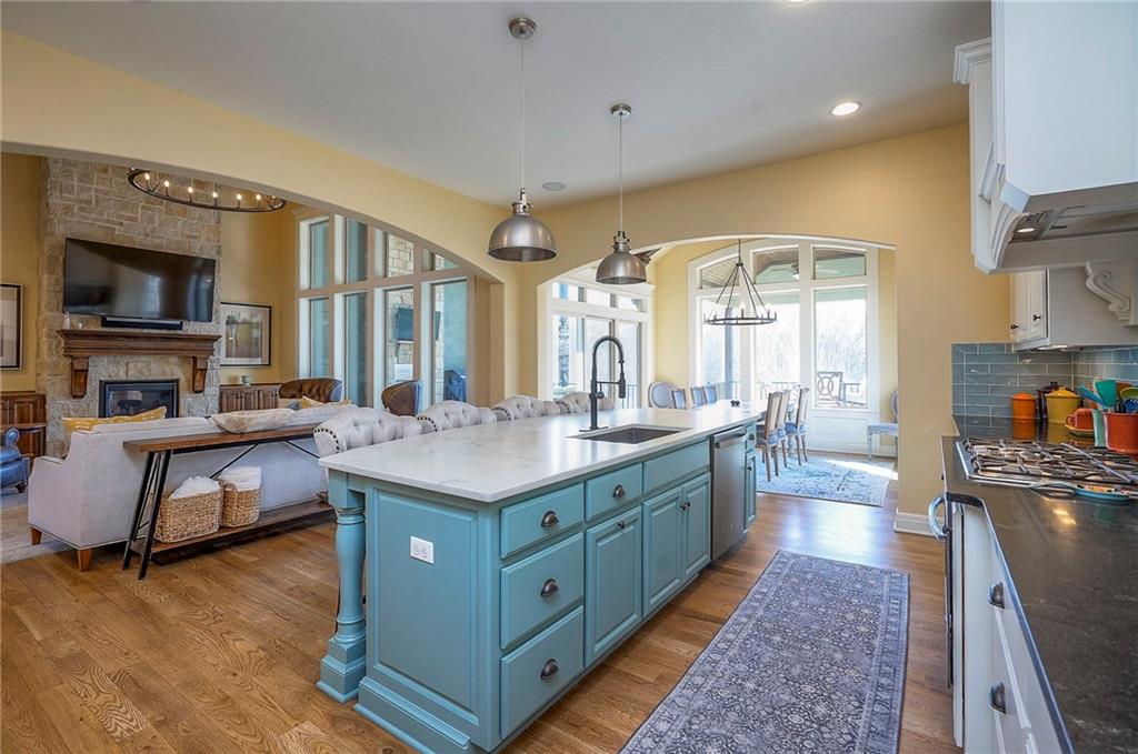 This may be The MOST DESIRABLE & REMARKABLE LOT in the whole subdivision of Polo Fields Reserve! This one-owner custom designed 1.5 story home has been meticulously built with 2x6 construction plus well- maintained. HUGE bonus for home backs to the Johnson County Parks & Rec Coffee Creek Steamway Trail! Covered Front Porch w/ Lush Landscaping greets you as you approach the Secluded Lot. The Grand Entry showcases the 2 story open concept layout. Den w/ French doors along w/ a Formal Dining Rm or Music Rm. The Great Rm is flooded w/ Natural Light & Soaring Ceilings w/ detailed beams. The layout continuously flows into the Chef’s Gourmet Kitchen w/ more beams in the Breakfast Rm. An Impressive & Well-Designed Butler’s Pantry & Walk-in Pantry are off the kitchen & a spacious mudrm w/ more built-in lockers for all of one’s needs is off the garage. There is no lack of storage or space in the Oversized 4 car Garage w/ Epoxy Floors. The Primary Suite is just as Pristine w/ designer wallpaper & custom drapes. The Primary Ensuite also has uncompromising quality that will not disappoint. The secondary bedrms on the second level are spacious, each having its own ensuite & walk-in closet. There is also a bonus/rec rm on the second level as well. The Walkout Lower Level is just as enchanting w/ floor to ceiling windows which allow for natural light. An impressive Wet Bar is the perfect place for entertaining a crowd or intimate enough for a smaller setting. The Recreational Area is the perfect place for a game of pool (not included). The Family Rm features a Rustic Barn Wood Wall. In addition a 5th Bedrm w/ its own ensuite, plus an Exercise Rm. The Fenced Backyard backs to GREEN SPACE plus NO neighbors behind the home or to the west. Relax in one of 3 outdoor entertaining areas: the covered screen deck w/ fireplace and TV, the covered deck w/ vaulted ceiling on the upper level, or the lower level screen patio. Tons of storage throughout! This home will not disappoint.