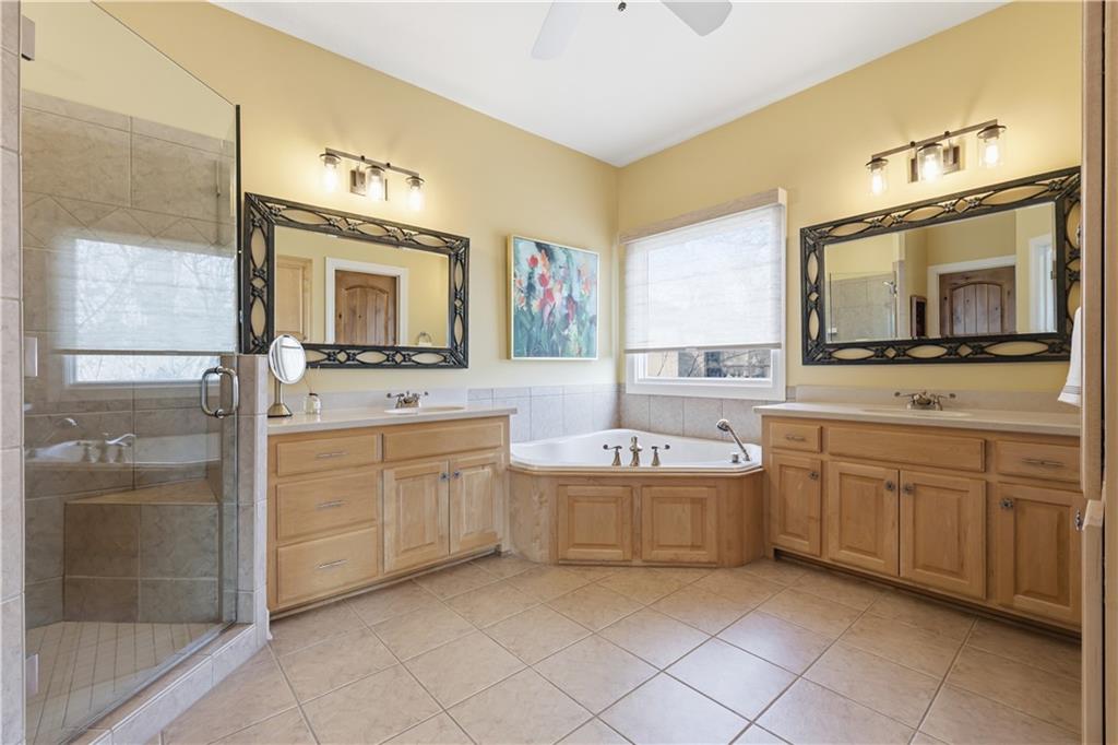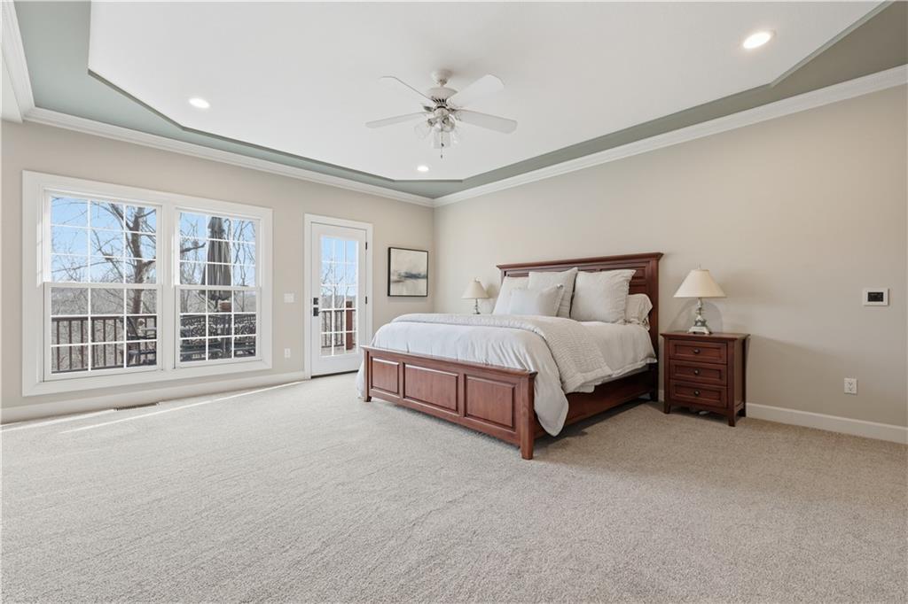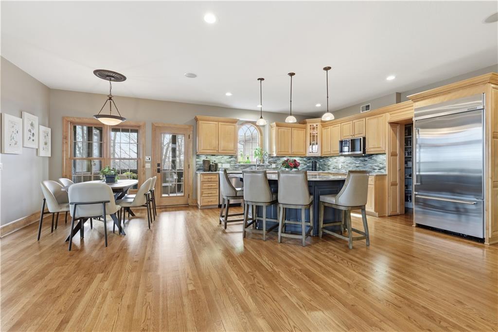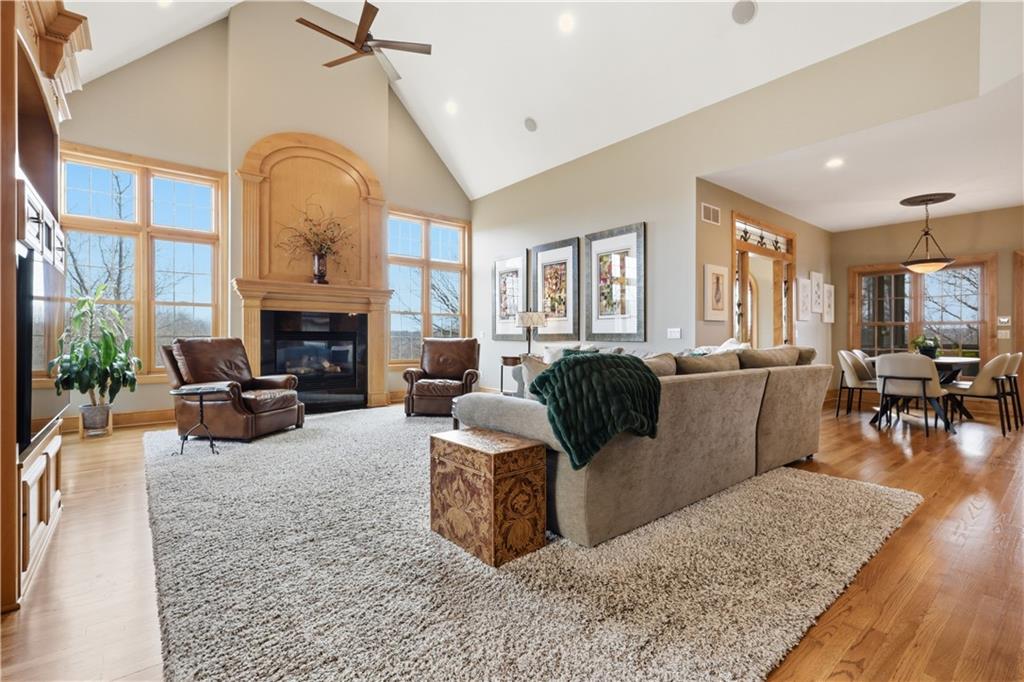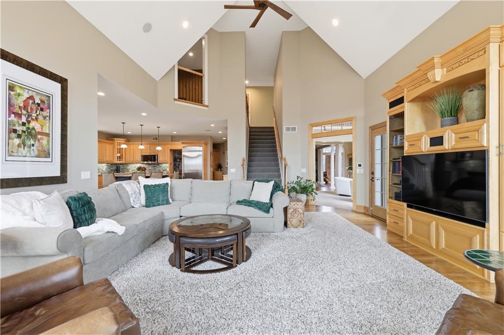 Stunning 8,355 SF estate at the end of a quiet cul-de-sac in highly sought-after Winterset Woods. Situated on a private .84-acre lot backing to maintained wooded green space and the community?s ?100 Acre Wood,? this home offers exceptional privacy with direct trail access to the Rock Island Trail. Main level features newly refinished hardwood floors, formal dining and living rooms, a spacious family room, gorgeous sunroom, walk-in pantry, and private office with side entry front porch access. The updated kitchen showcases natural maple cabinetry, quartzite counters, new Wolff double ovens & induction range. All updated appliances. This home offers two master suites. The main-floor master suite includes a spacious bath with jacuzzi tub and private deck access. The 2nd level master suite has cathedral ceiling framing tree top views. Bath has heated tiled floor and a Jacuzzi River Bath. Closets feature California Closet design. The remaining 2nd level offers a loft and 2 suites with private baths, highlighted by Alder hardwood doors and Renewal by Andersen windows. The walkout lower level is built for entertaining with a large rec room, gas fireplace, full bar, billiards area, guest suite with full bath, second laundry, custom wine cellar (1,000+ bottle capacity), additional rec space, and nearly 1,400 SF of storage. A storm shelter/vault is located beneath the front porch. Outdoor living includes multiple decks, screened porch, covered patio with finished dry ceiling and shiplap detail, gas fire pit, ornamental iron fencing, and additional dry storage below the south deck. The 4-car garage (998 SF) provides ample space. Roof replaced in 2020 with copper detailing. Perfect location with easy proximity to I-470. Just minutes from Lowenstein Park, The Streets of West Pryor, and Summit Woods.